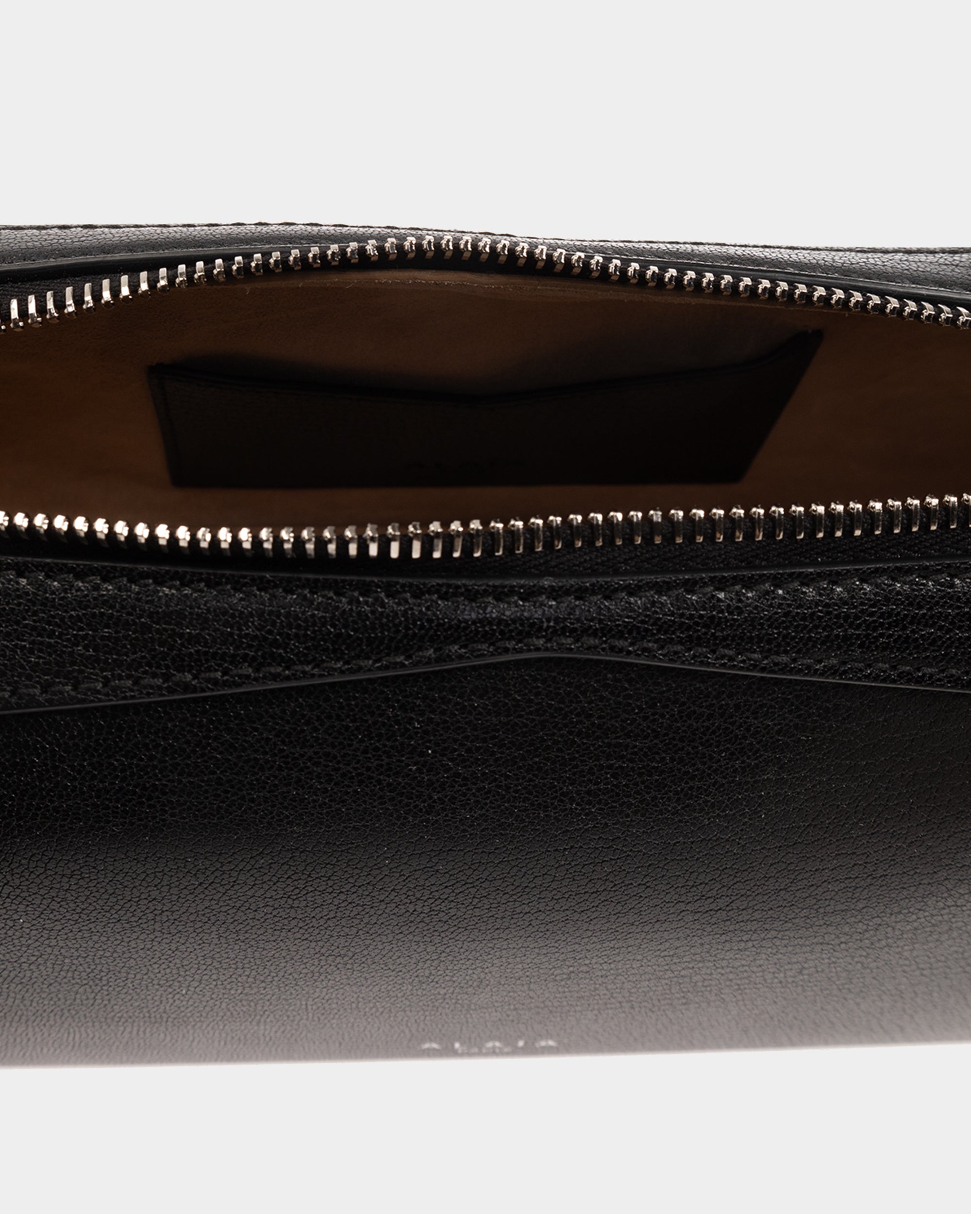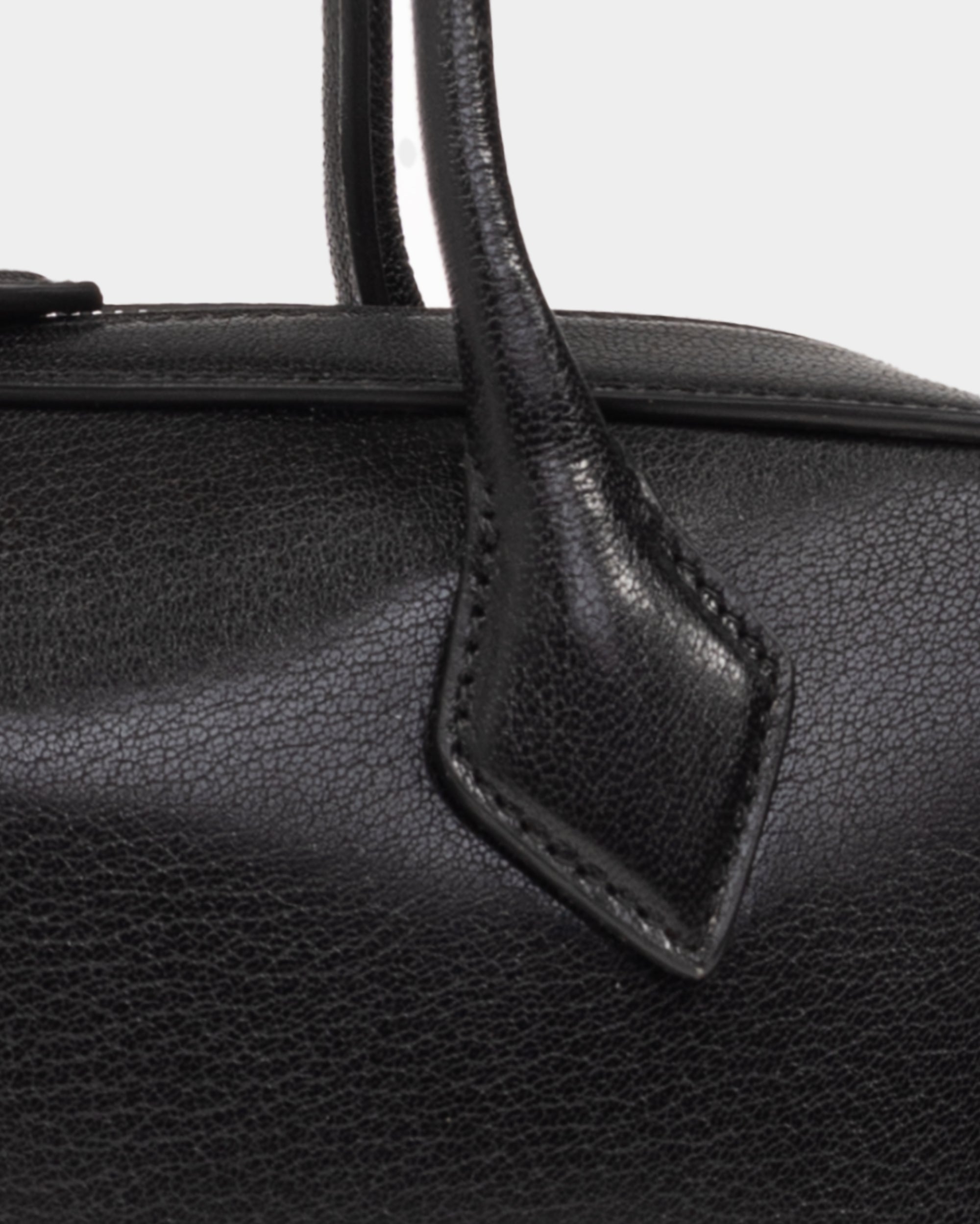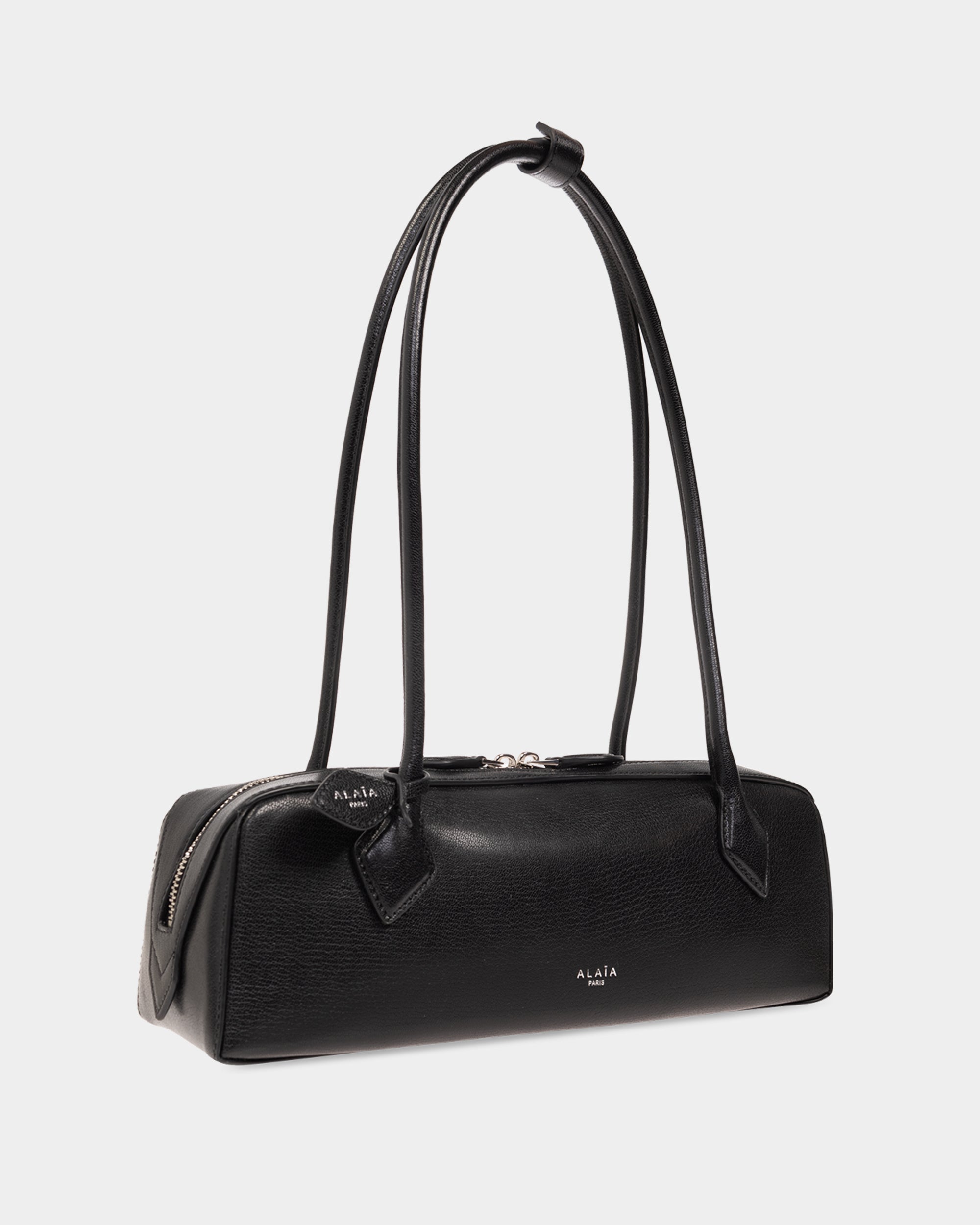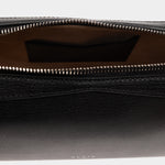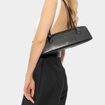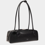 此款黑色肩背包選用柔軟山羊皮製成,呈現細膩質感與自然光澤。簡約俐落的包型搭配雙向拉鍊設計,提升日常使用的便利性。正面壓印品牌Logo低調展現識別,整體風格兼具實用與質感,適合多元穿搭場景。