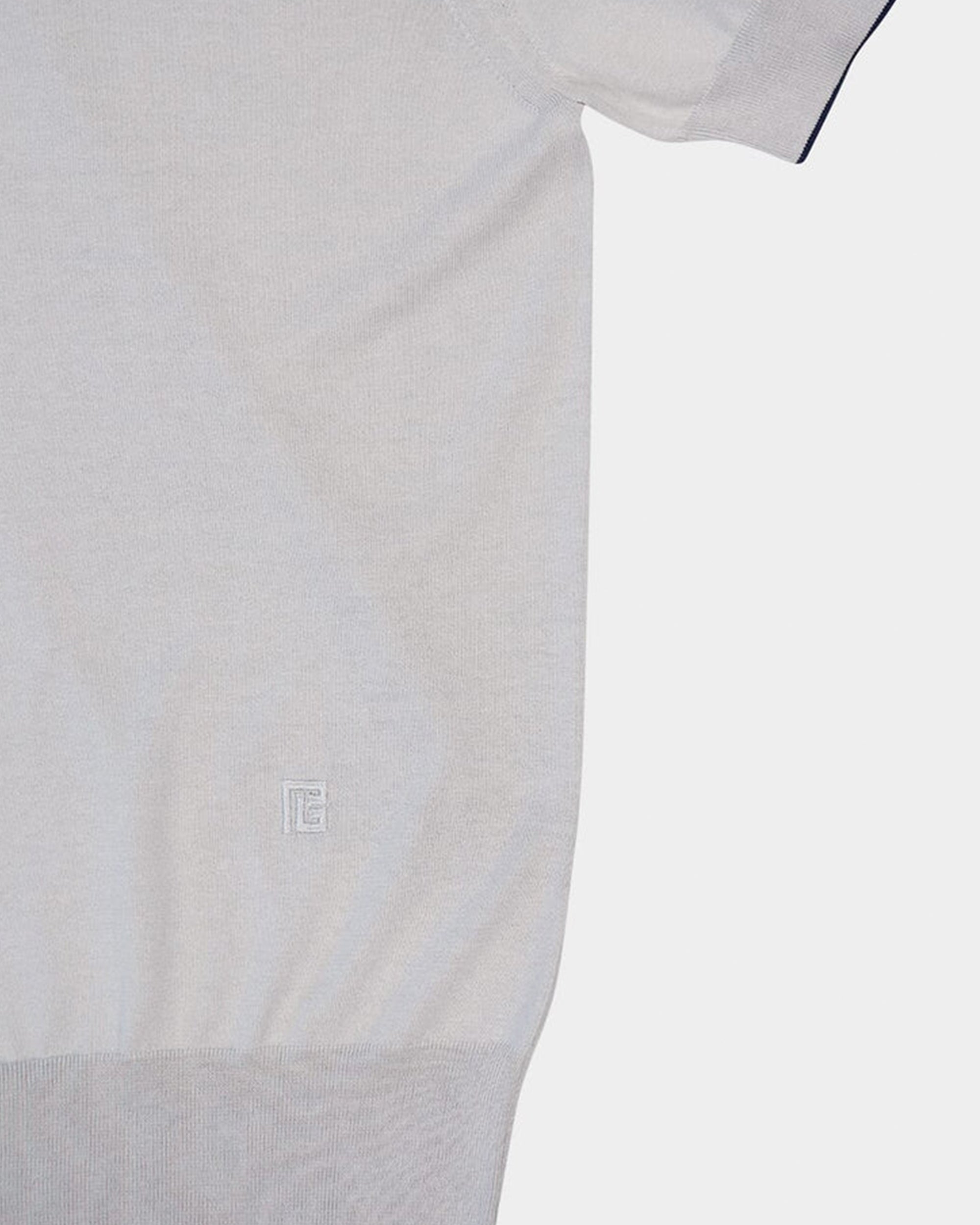 採用棉與絲混紡針織面料,質地柔軟細緻,帶有微光澤感。經典 Polo 領設計搭配短袖剪裁,版型俐落,適合日常穿搭或半正式場合,展現低調奢華的質感。