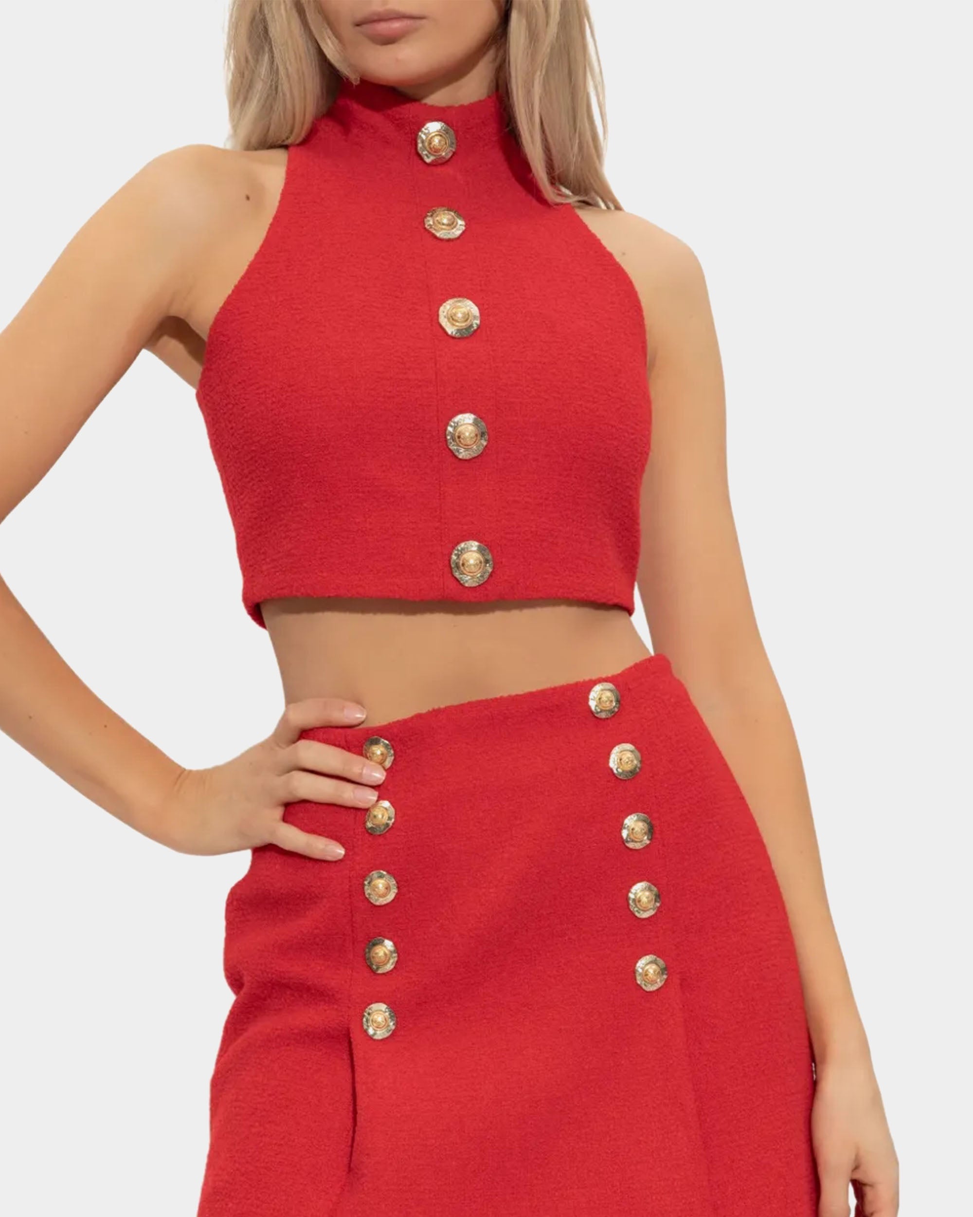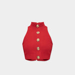 彈性針織布料打造,鮮明紅色展現大膽時尚風格。立領設計搭配前排 BALMAIN 經典金色徽章釦,突顯品牌標誌性細節。修身剪裁修飾曲線,短版設計拉長比例,適合搭配高腰下裝,展現摩登性感氣質。