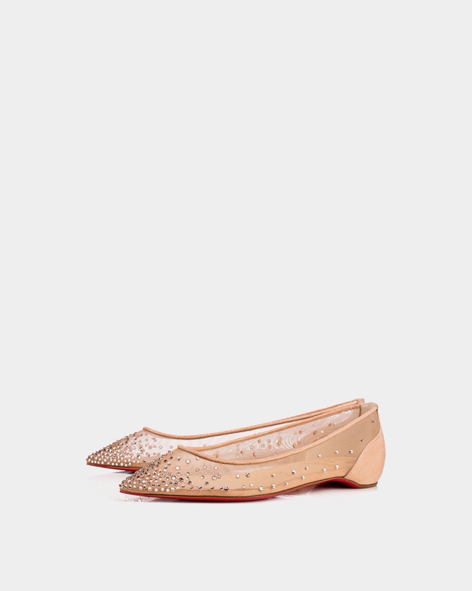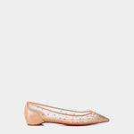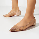 Follies Strass 芭蕾平底鞋以優雅裸粉色網紗打造,鑲嵌細緻水鑽營造柔美光澤,延續經典紅底設計,優雅中帶有時尚感。適合日常穿搭、婚禮換鞋或優雅通勤,是舒適與氣質兼備的選擇。