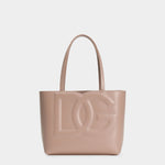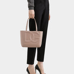 裸粉色皮革為畫布,勾勒出都會女性的優雅輪廓。立體壓紋Logo宛如雕塑般立於包身,細膩光澤在光影間流轉,低語著專屬於品牌的藝術語彙。寬闊的內部空間,彷彿盛載著生活的靈感與日常的詩意。銀色金屬細節如點睛之筆,為整體增添一抹現代感。