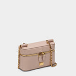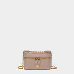 以柔美裸粉色皮革精心製作,呈現出清新脫俗的現代氣息。俐落的外型線條結合立體包身設計,展現時尚自信。金色金屬鍊帶與雙拉鍊細節,為整體造型增添亮眼質感。品牌標誌金屬牌低調點綴,細節處處彰顯品味。輕巧包型設計,無論肩背或斜背,皆能自在切換,輕鬆應對各種生活場合,讓你成為人群中的焦點。