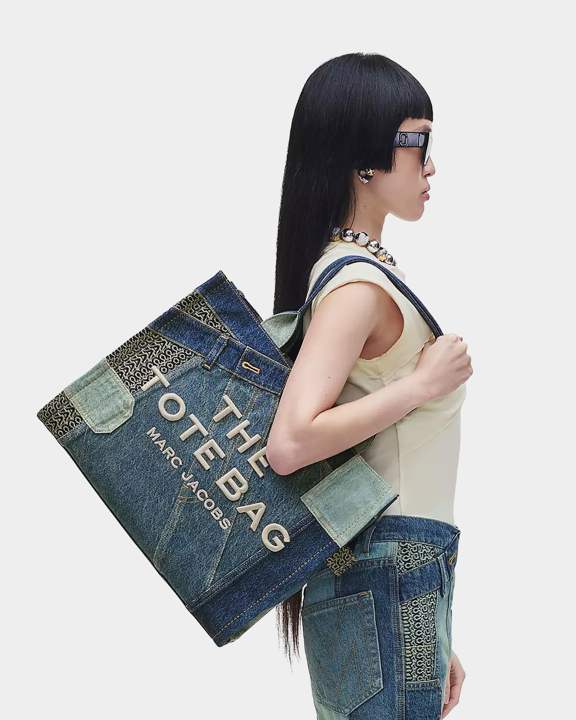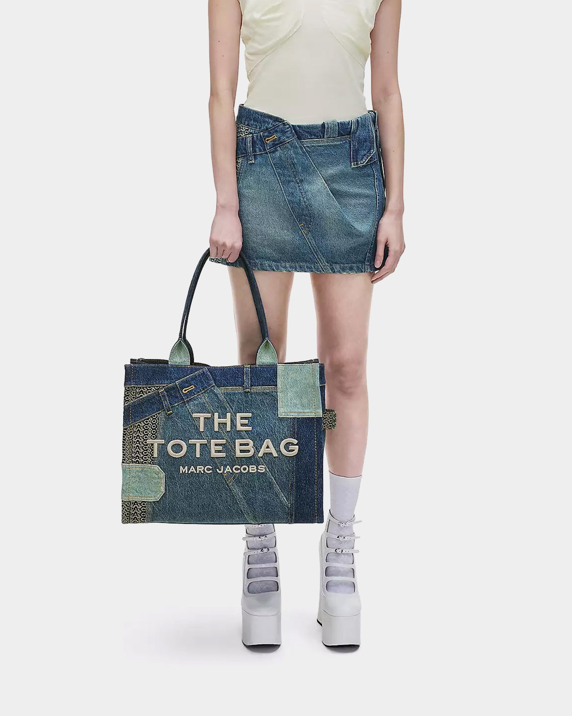 MARC JACOBS 拼接丹寧大型托特包