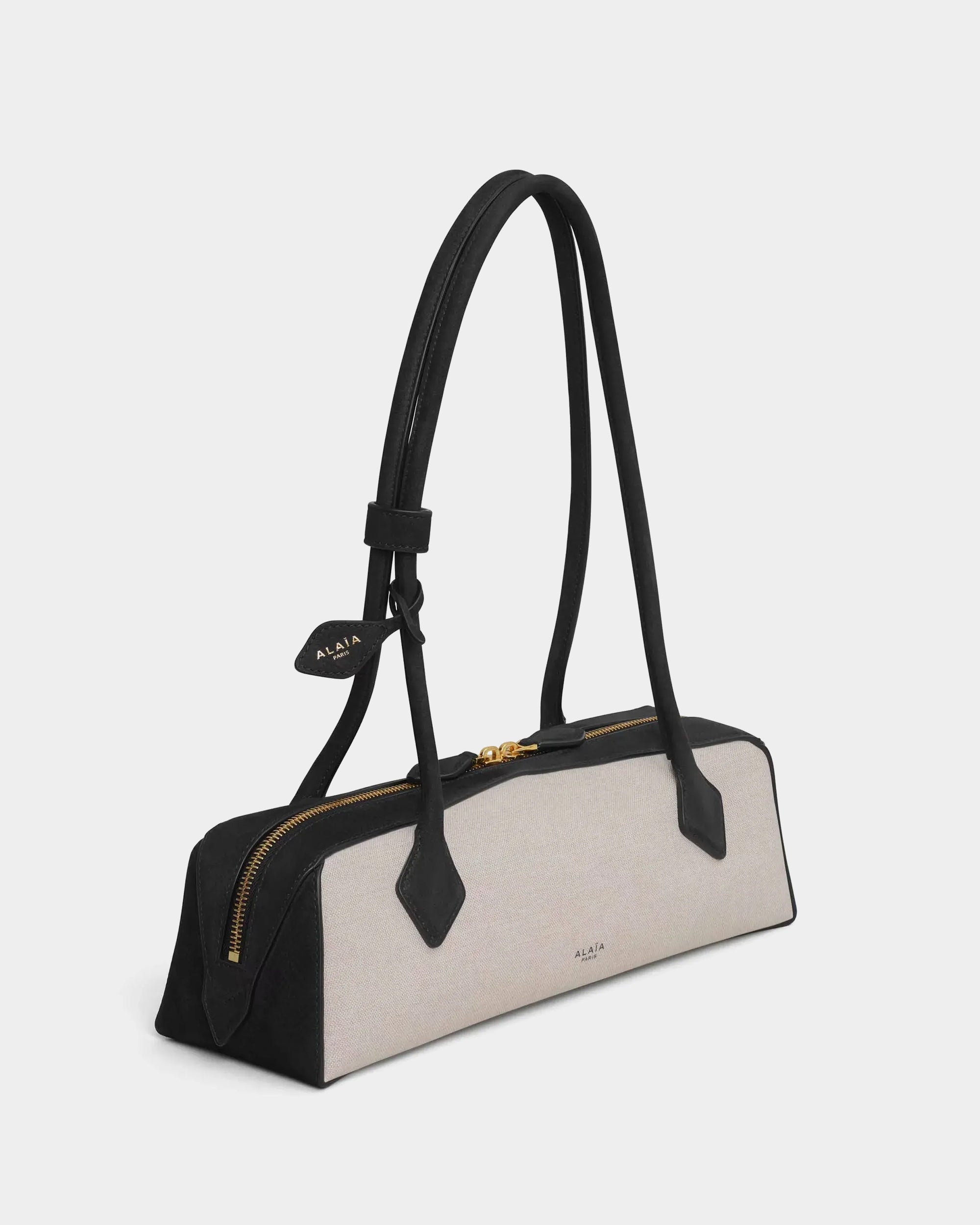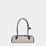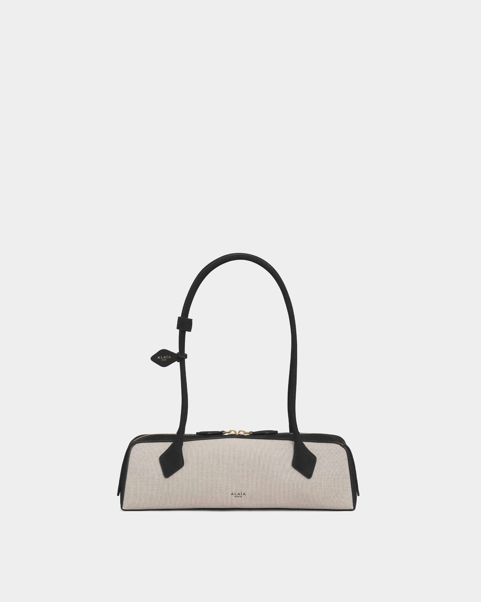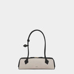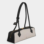 以品牌標誌性的修長輪廓打造,結合帆布與Nubuck皮革拼接,呈現自然質感與隨性風格。圓筒提把搭配裝飾性綁結細節,低調中帶有設計亮點。輕巧比例與肩背設計兼具實用與造型感,內附可拆式鏡飾,為日常使用增添貼心細節。