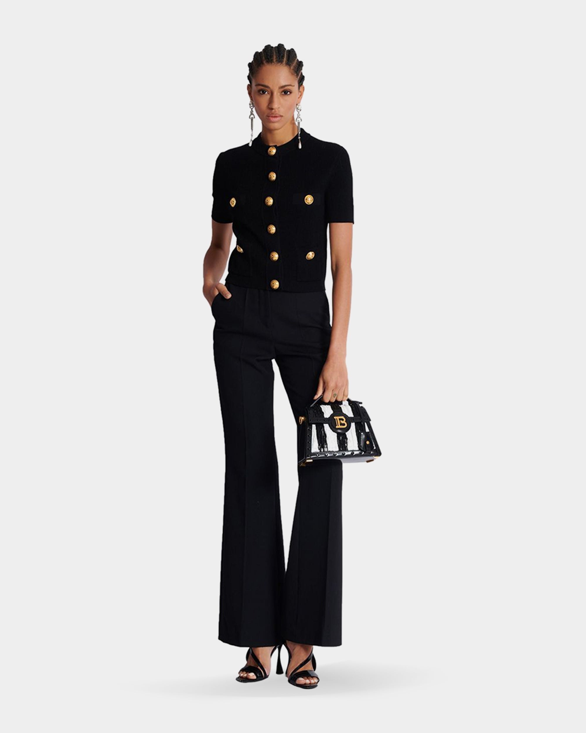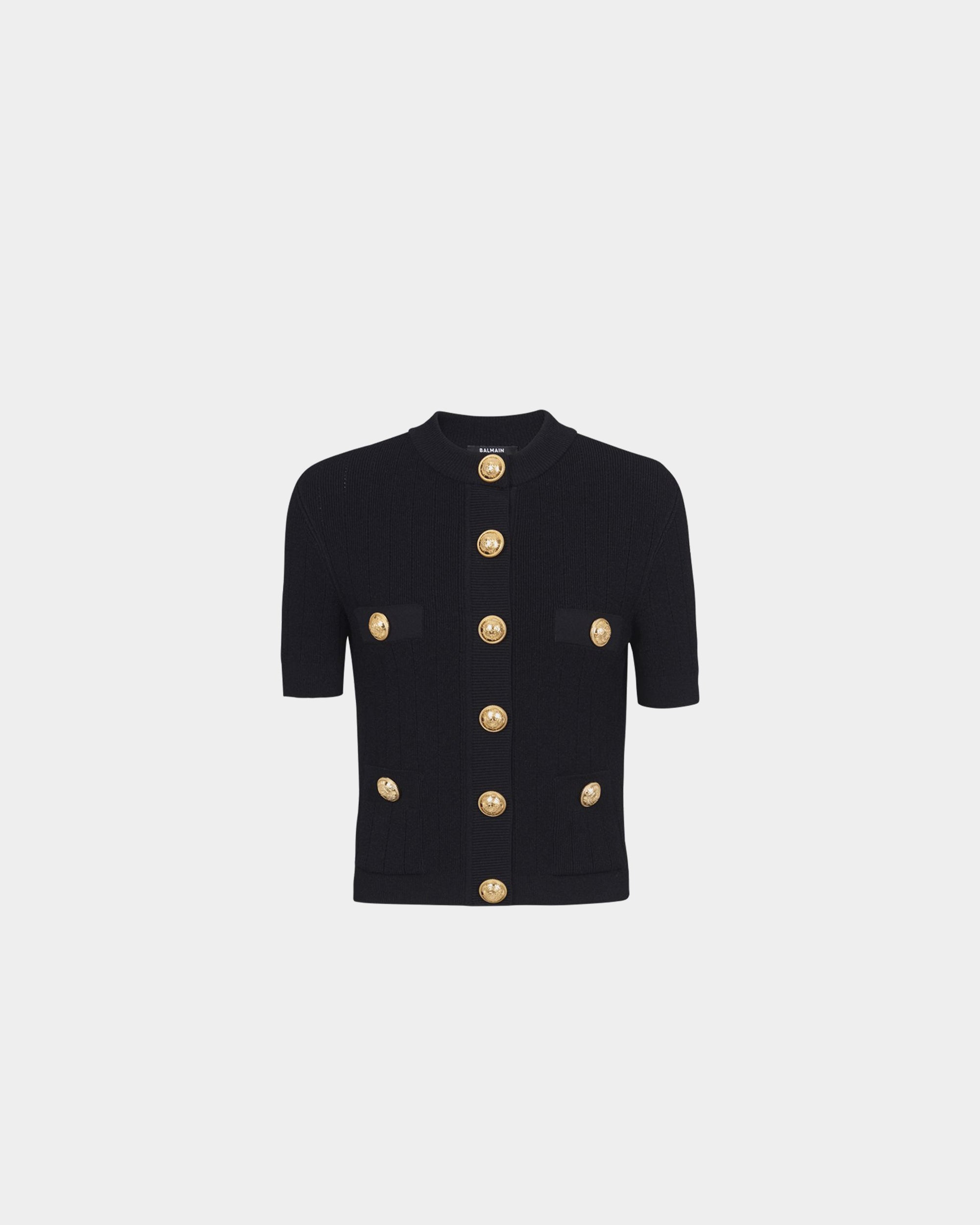 BALMAIN 金幣釦造型短袖針織外套 - 黑