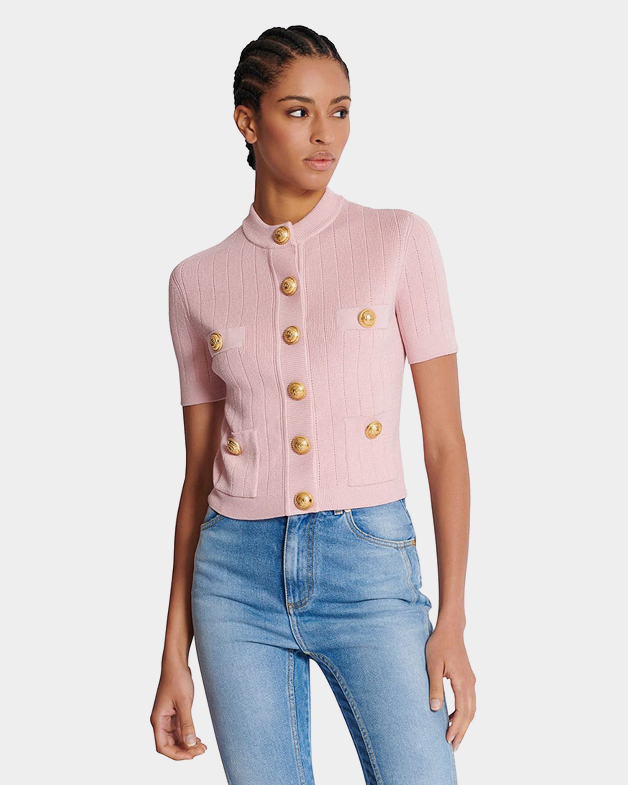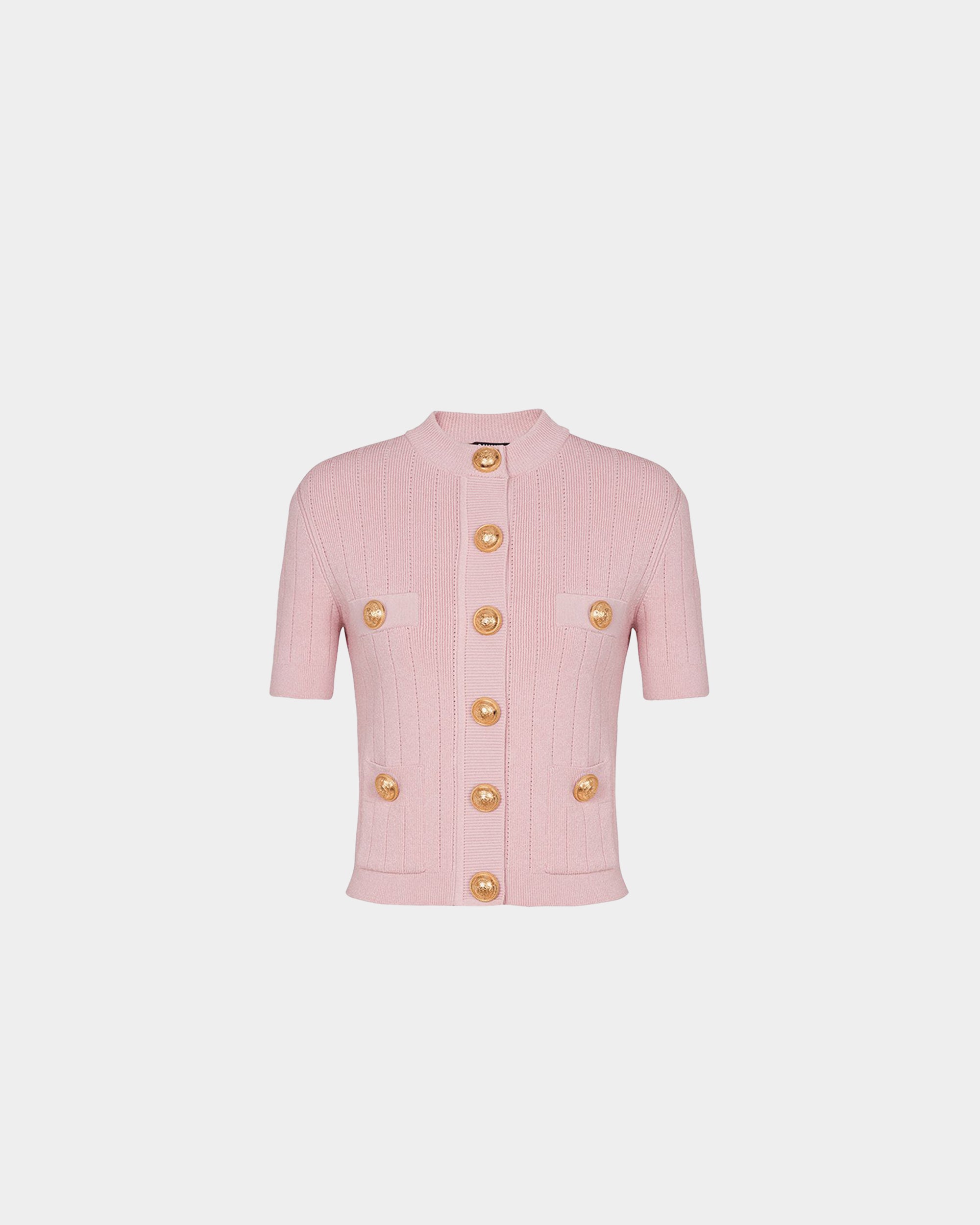 BALMAIN 金幣釦造型短袖針織外套 - 粉紅