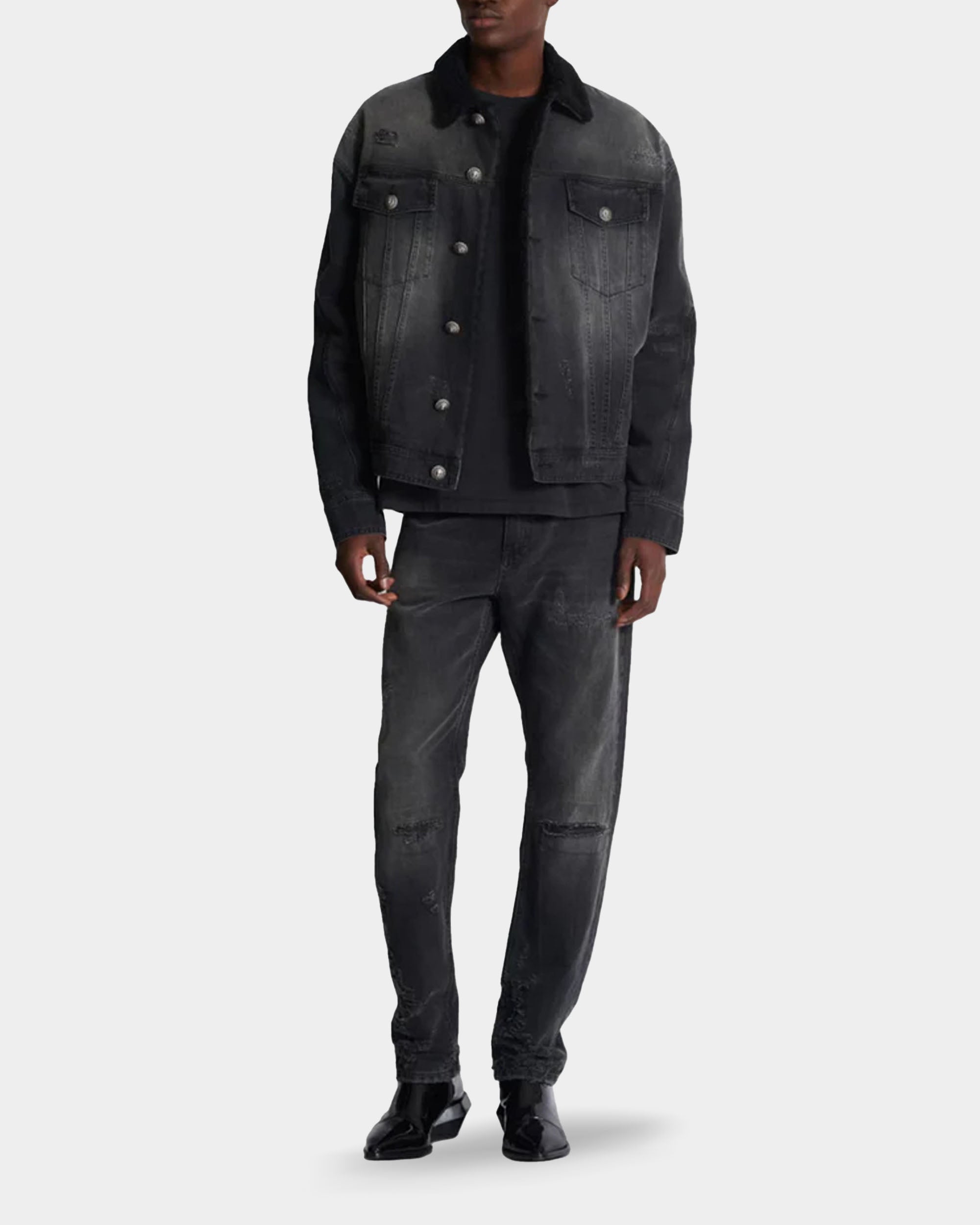 BALMAIN 刷破羊毛內裡牛仔外套