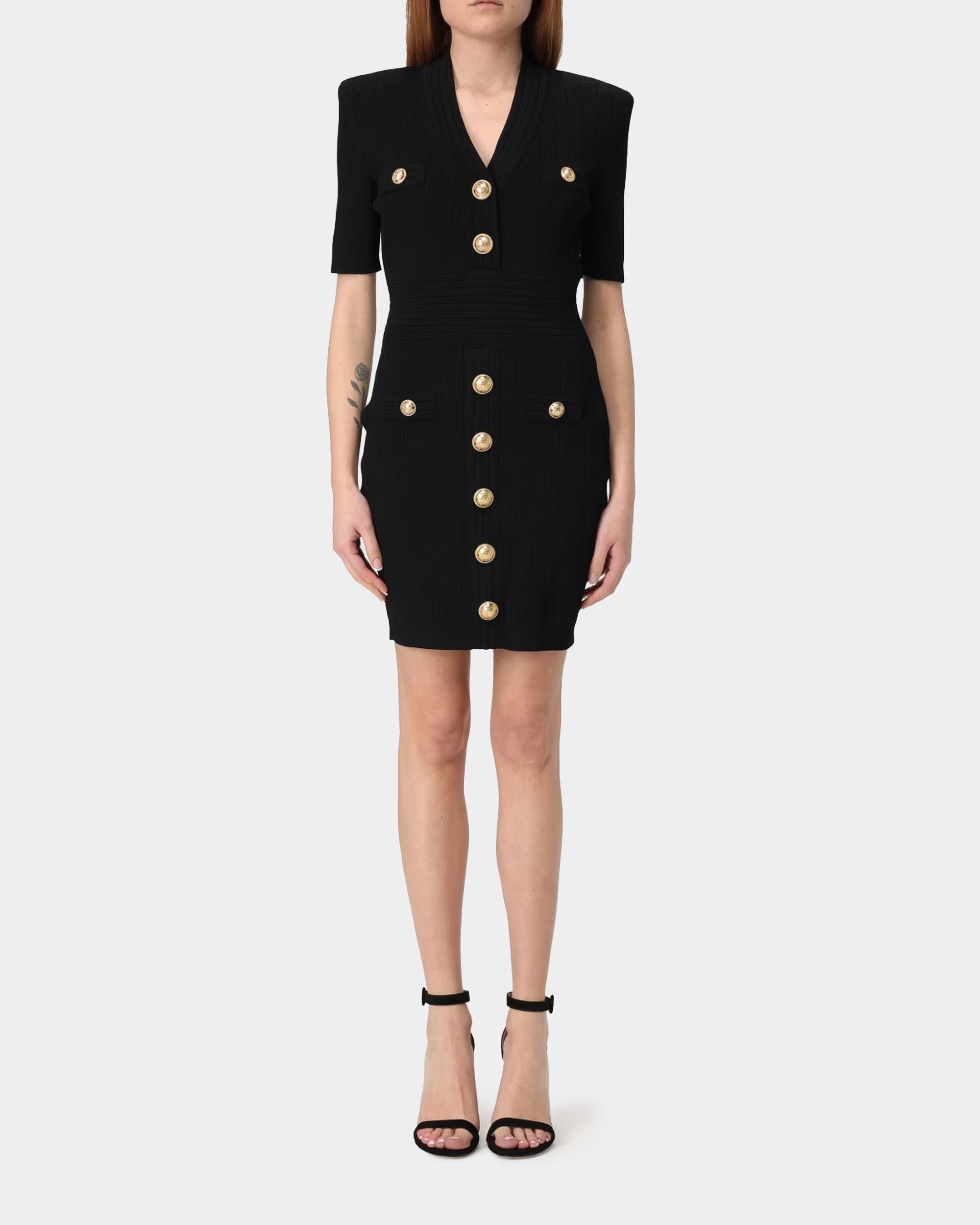 BALMAIN 金鈕釦V領修身短袖針織洋裝