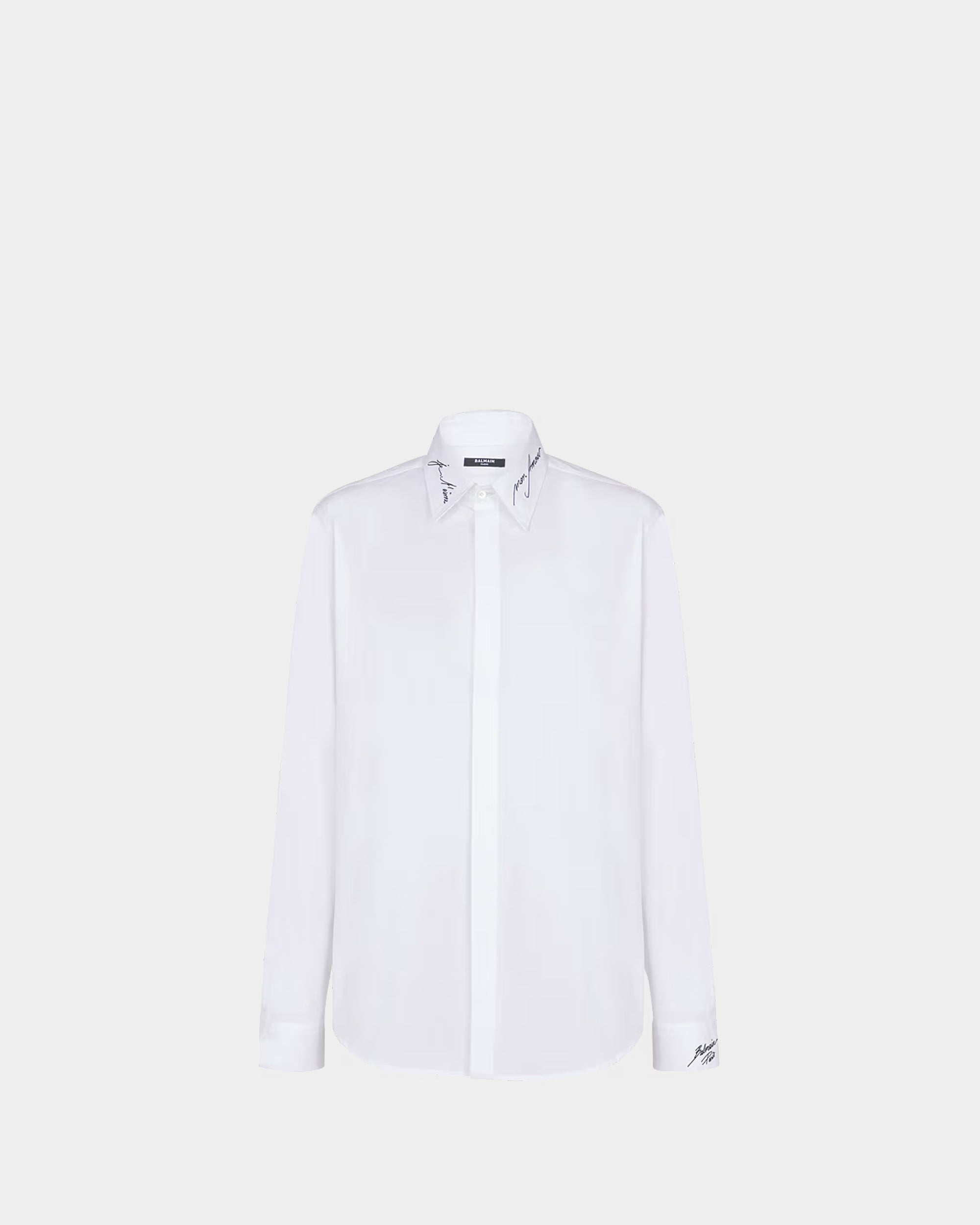 BALMAIN 刺繡領白色府綢襯衫