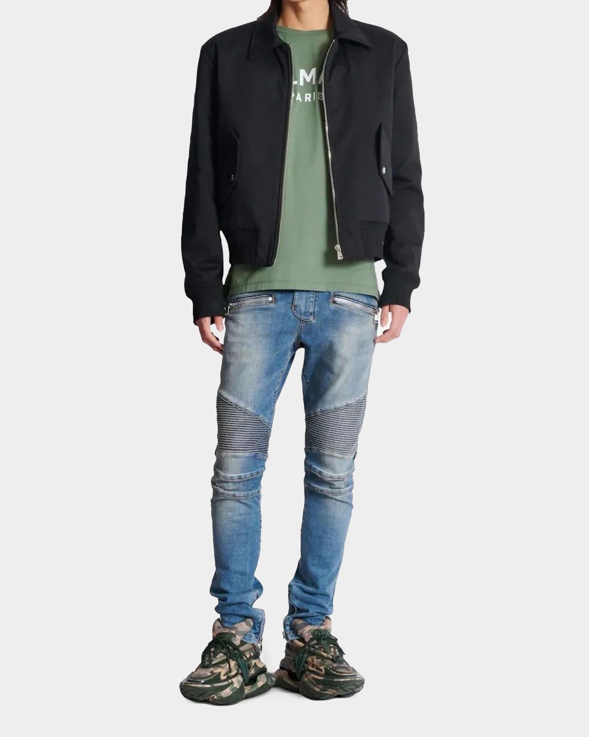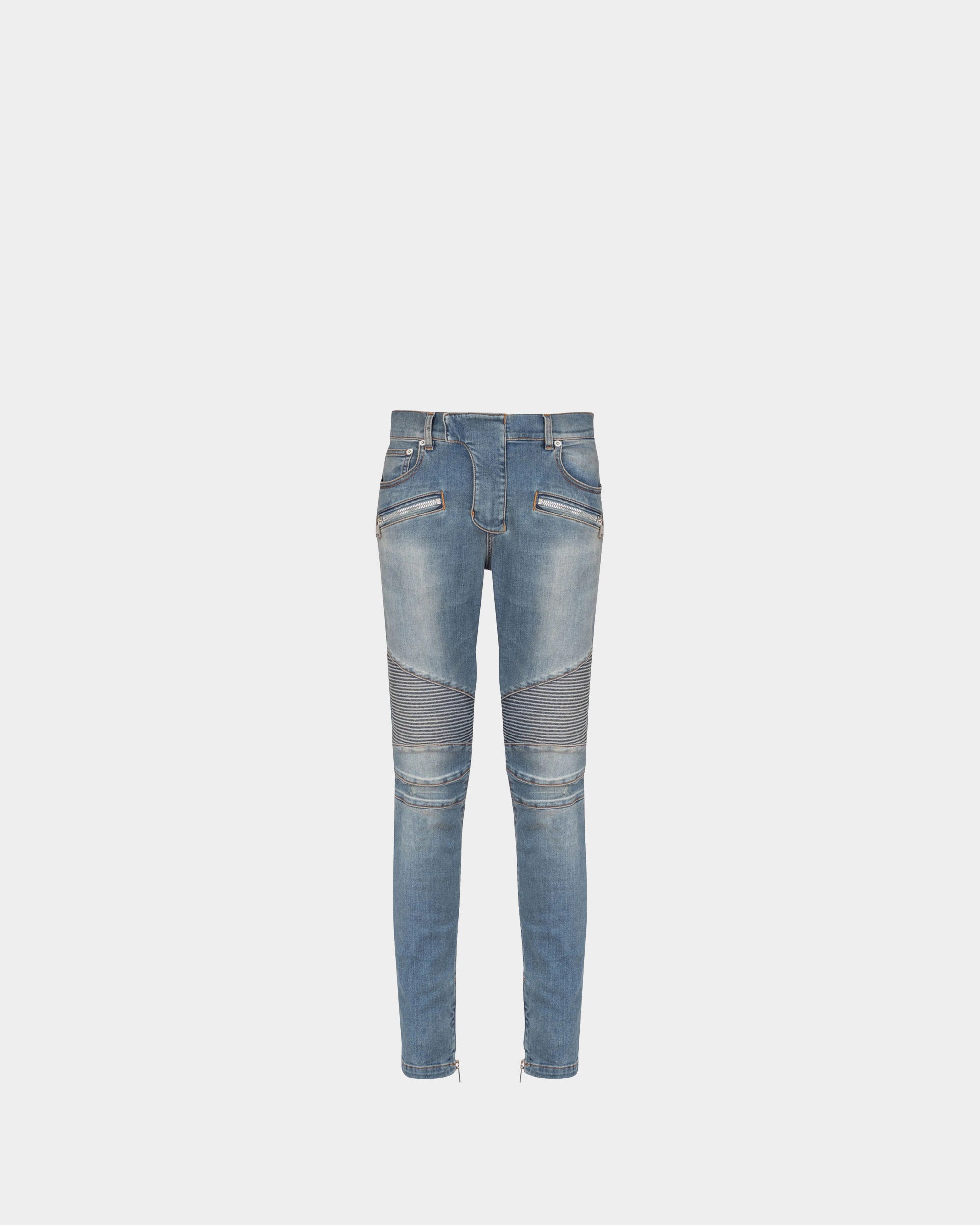 BALMAIN 藍色拼接修身牛仔褲
