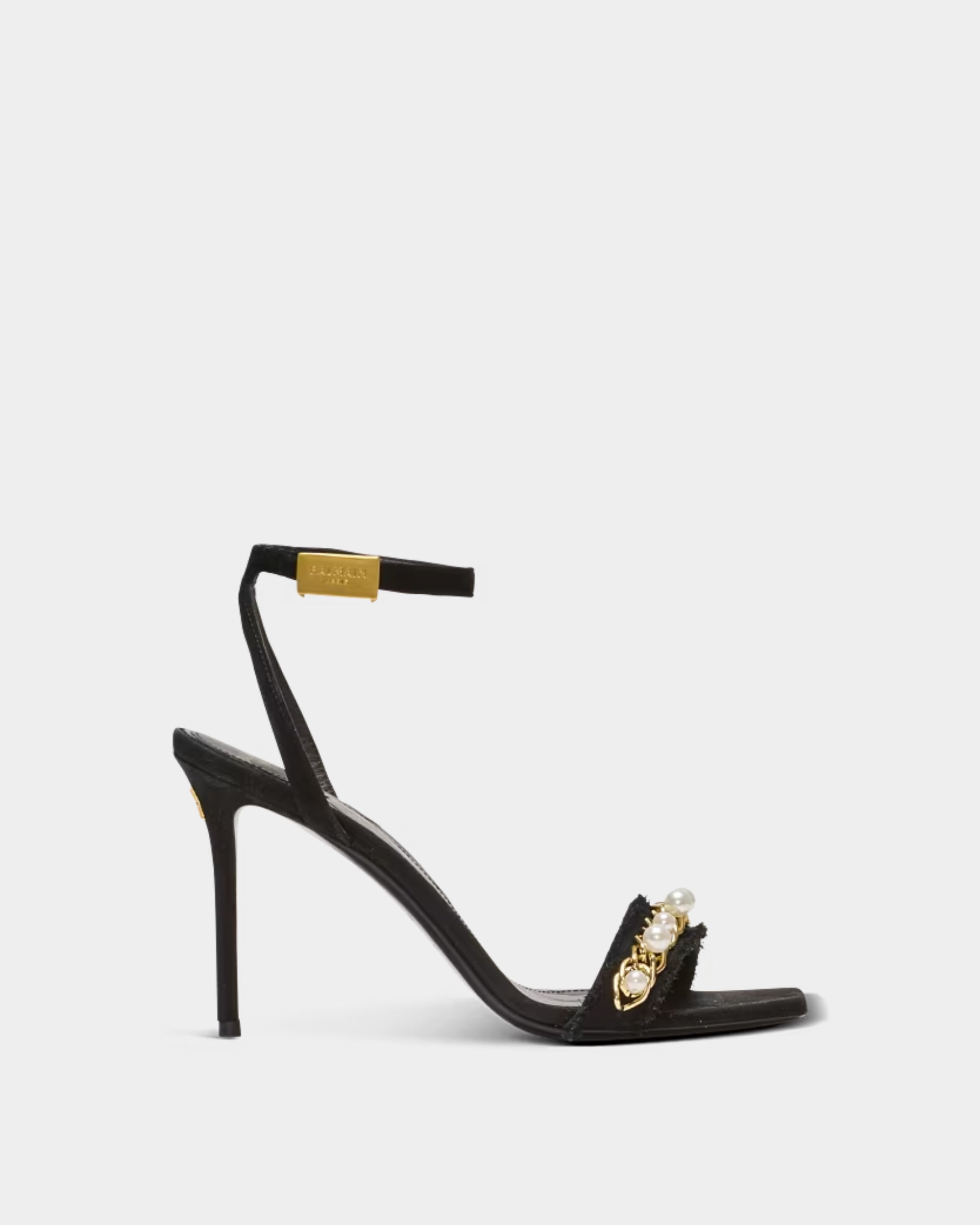 BALMAIN 黑色珍珠金鍊高跟涼鞋