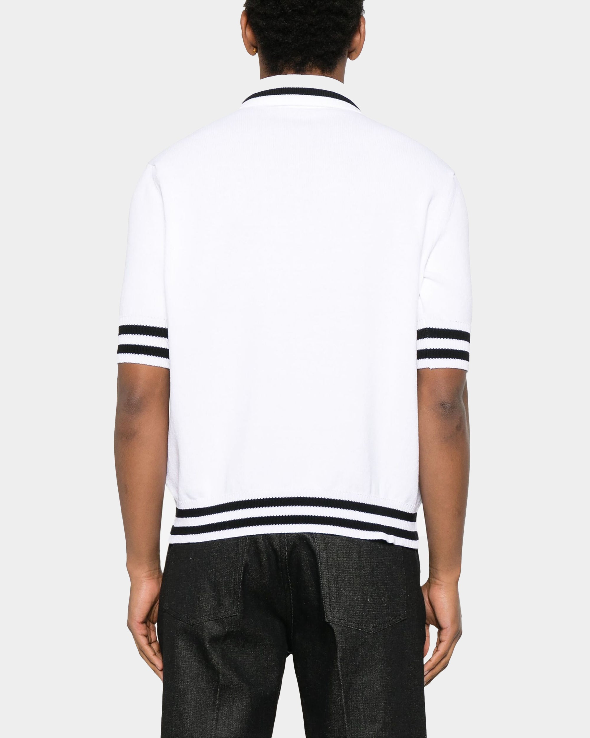 BALMAIN Striped Piping Embroidered Wool Polo Shirt - White
