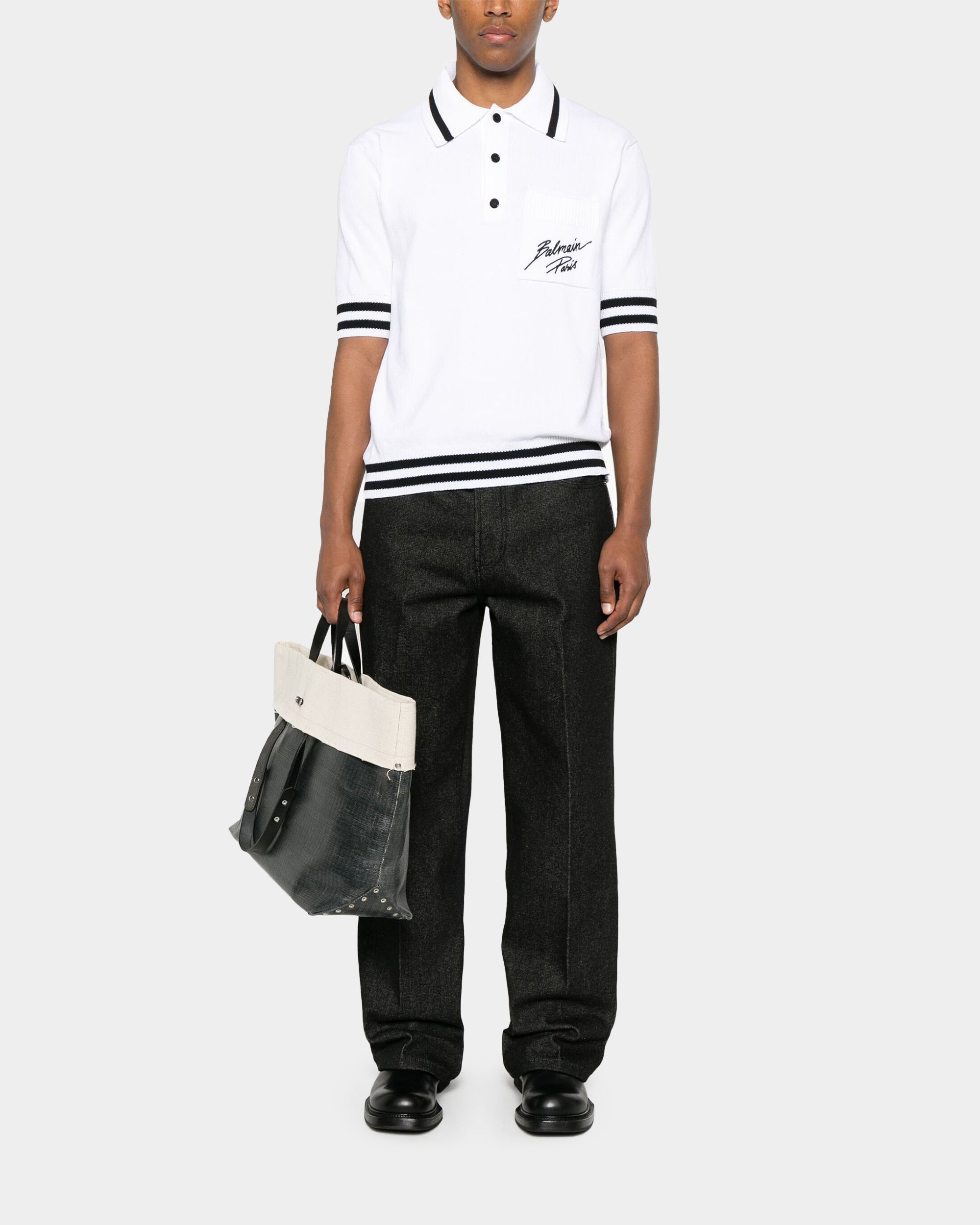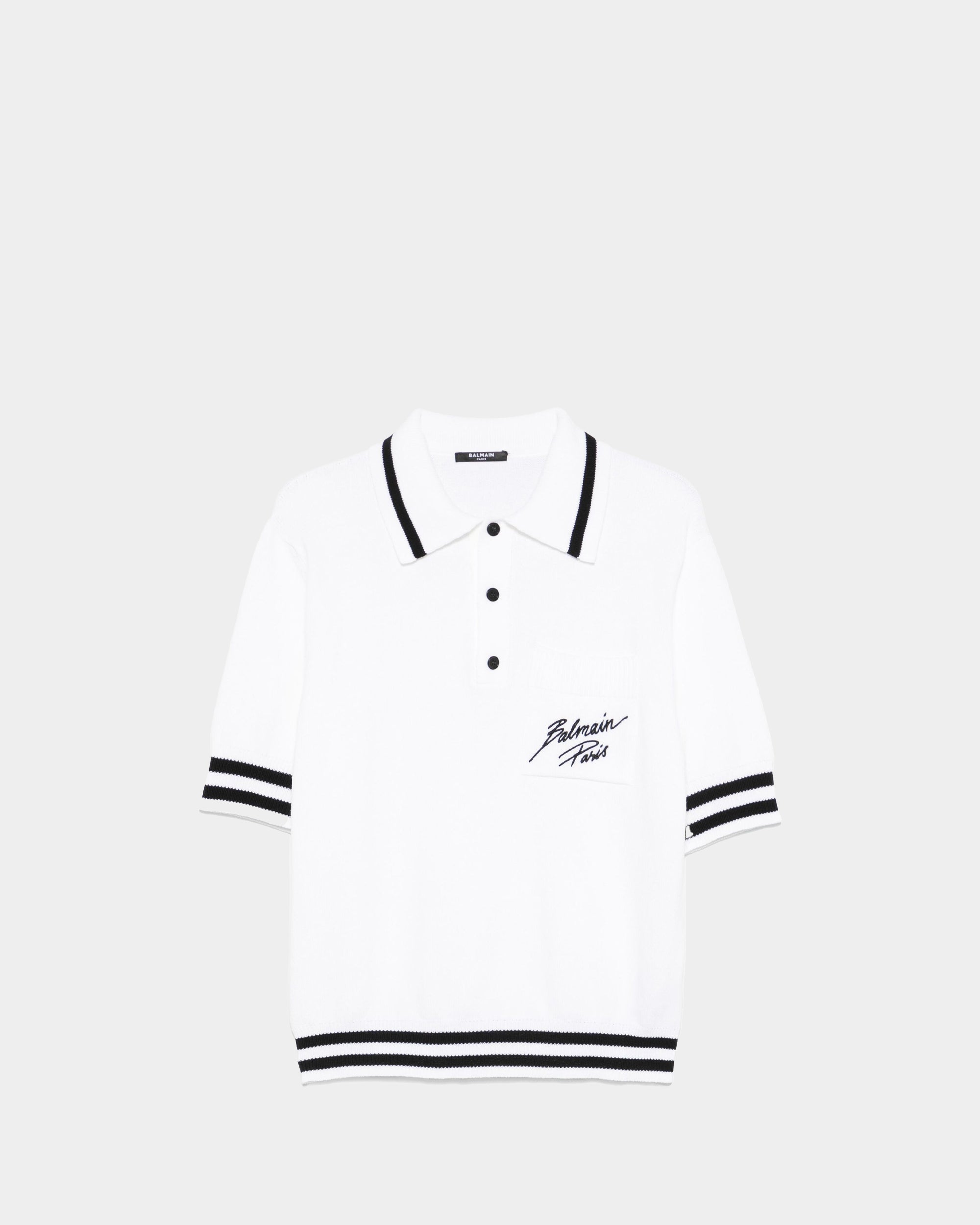 Cut in a classic short-sleeved polo shirt silhouette, it features Balmain Paris embroidery on the chest and ribbed trims, creating an elegant sporty style perfect for everyday or casual dress-up.