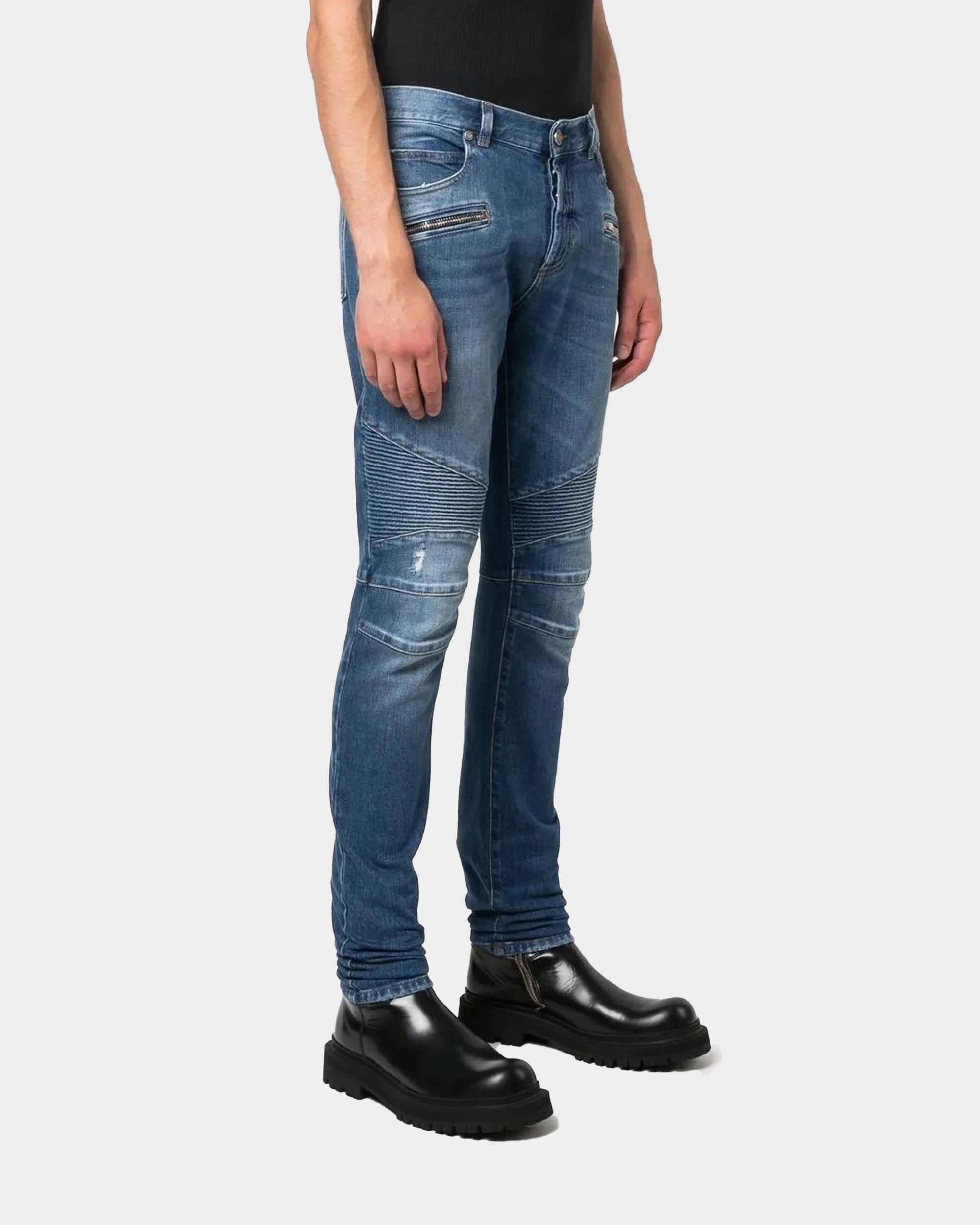 BALMAIN Distressed biker slim-fit jeans