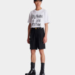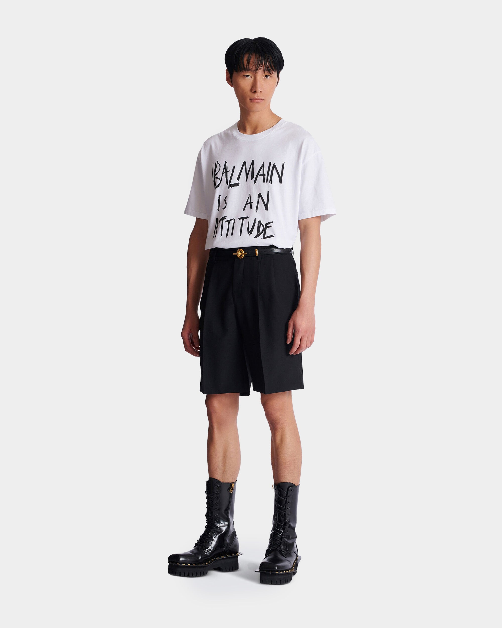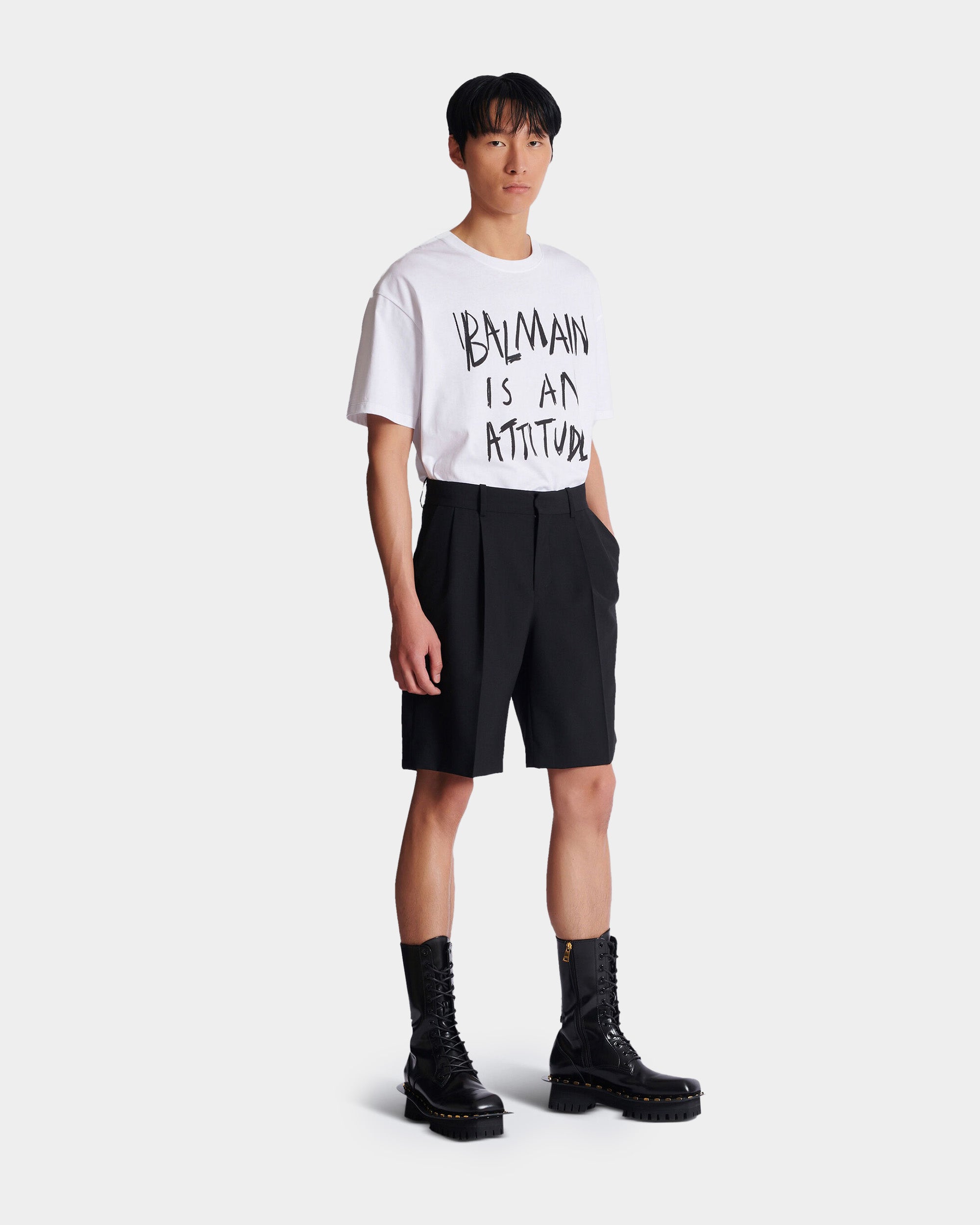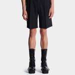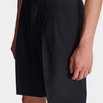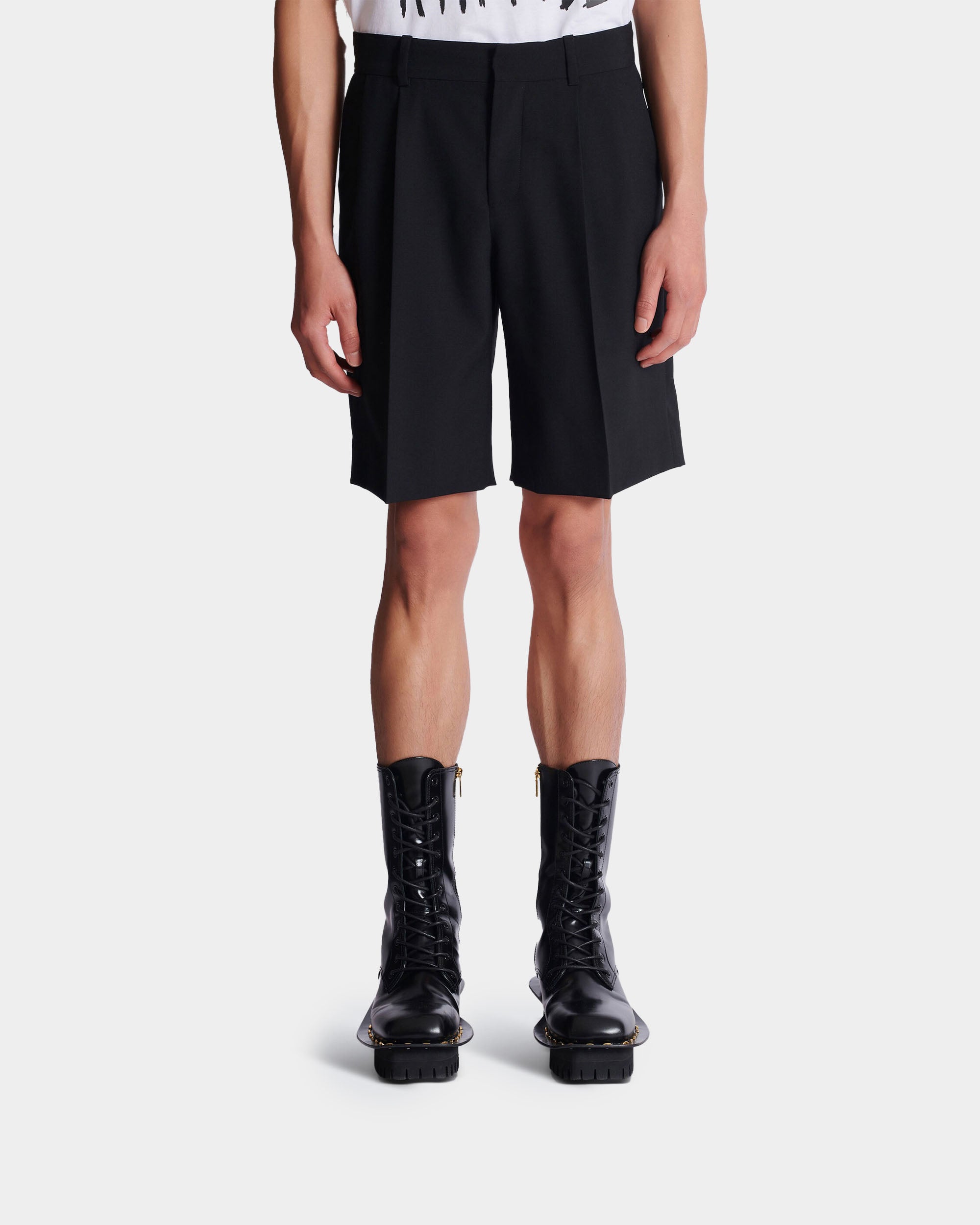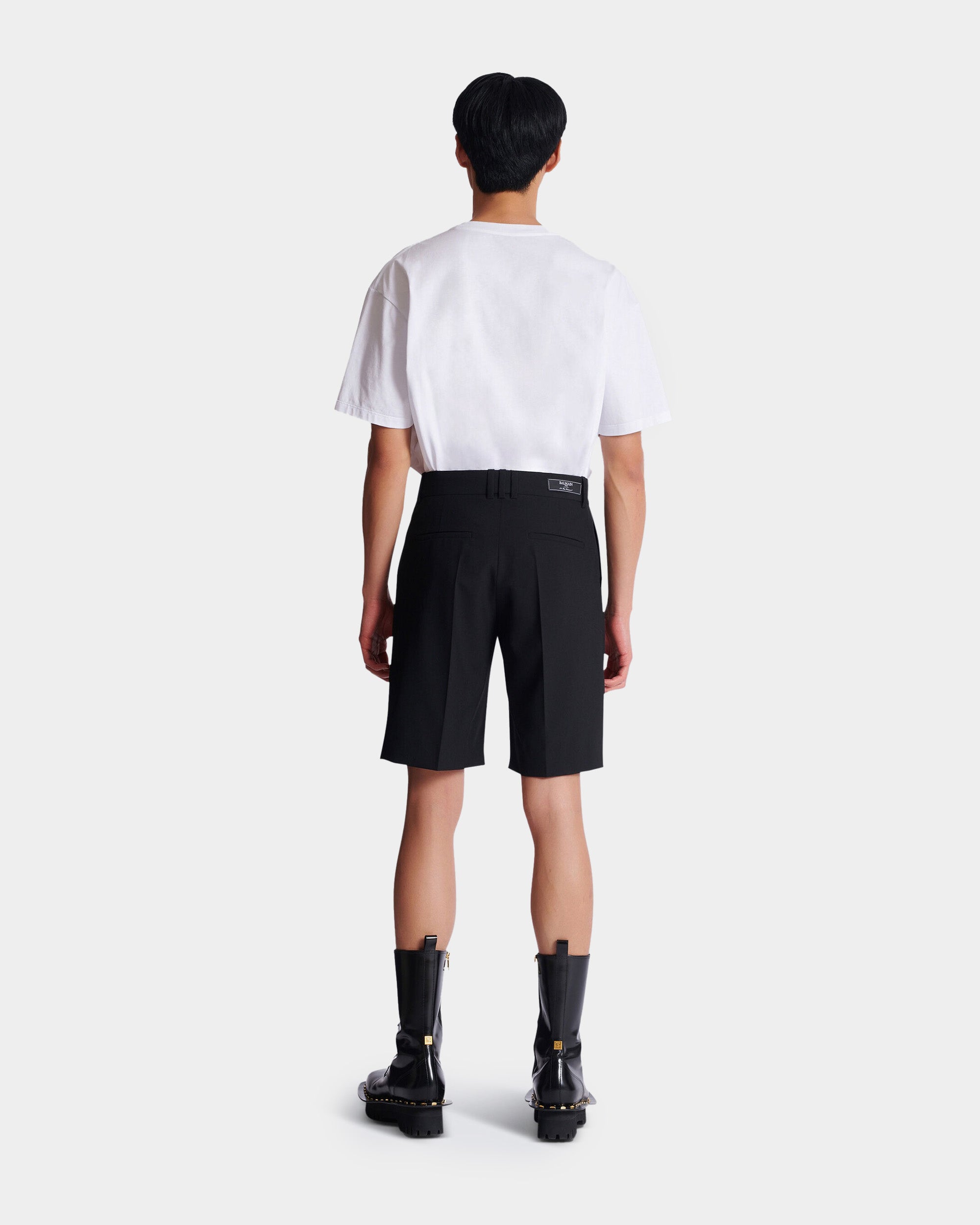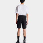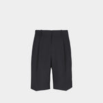 此款羊毛百慕達短褲以俐落打摺設計呈現清爽比例,結合直筒剪裁,展現簡潔而有結構感的輪廓。側邊義大利口袋與腰頭皮帶環設計兼具實用性與造型感,背面刺繡標籤低調點綴細節。適合搭配襯衫或西裝外套,打造都會感與夏季正式風格兼具的穿搭。