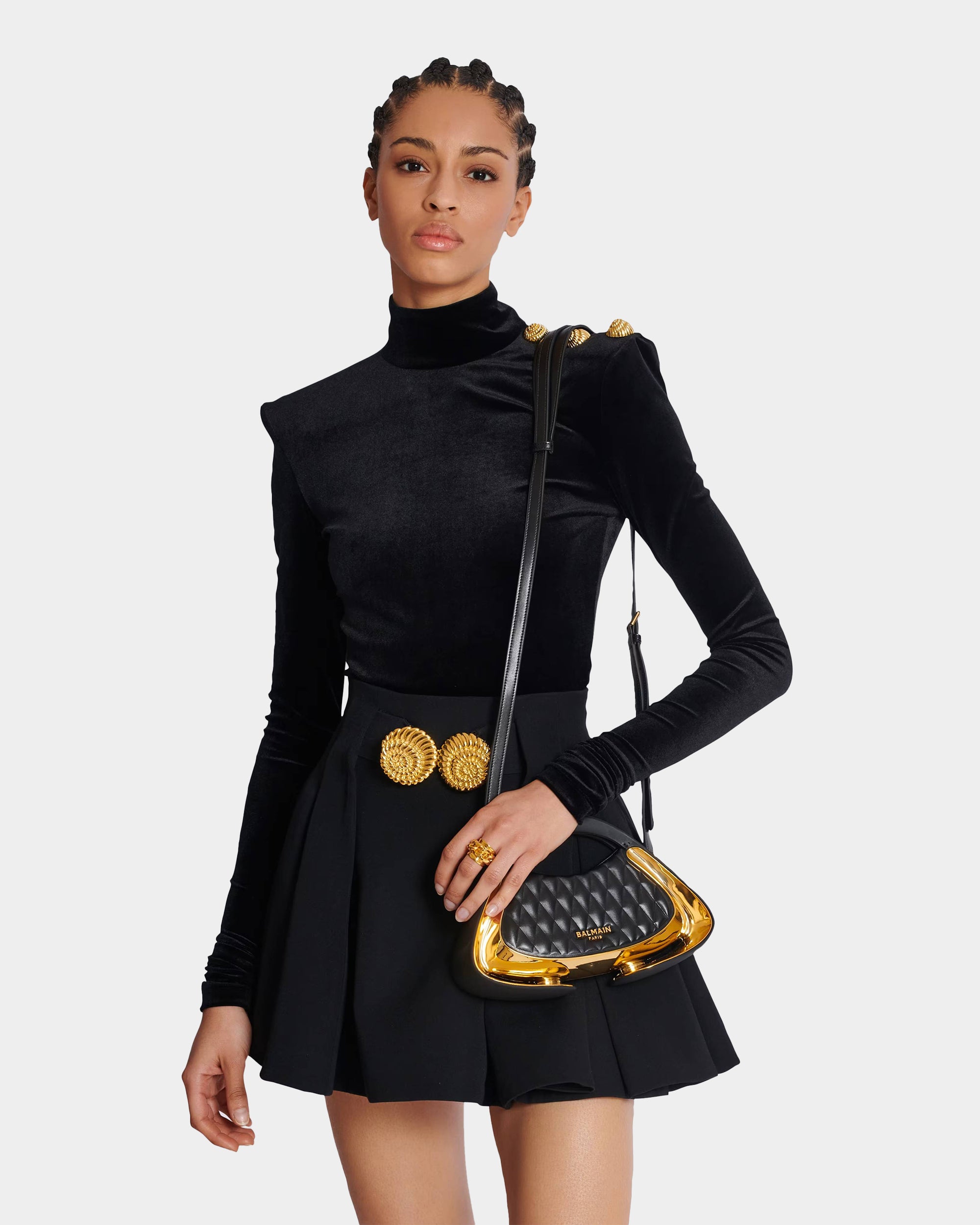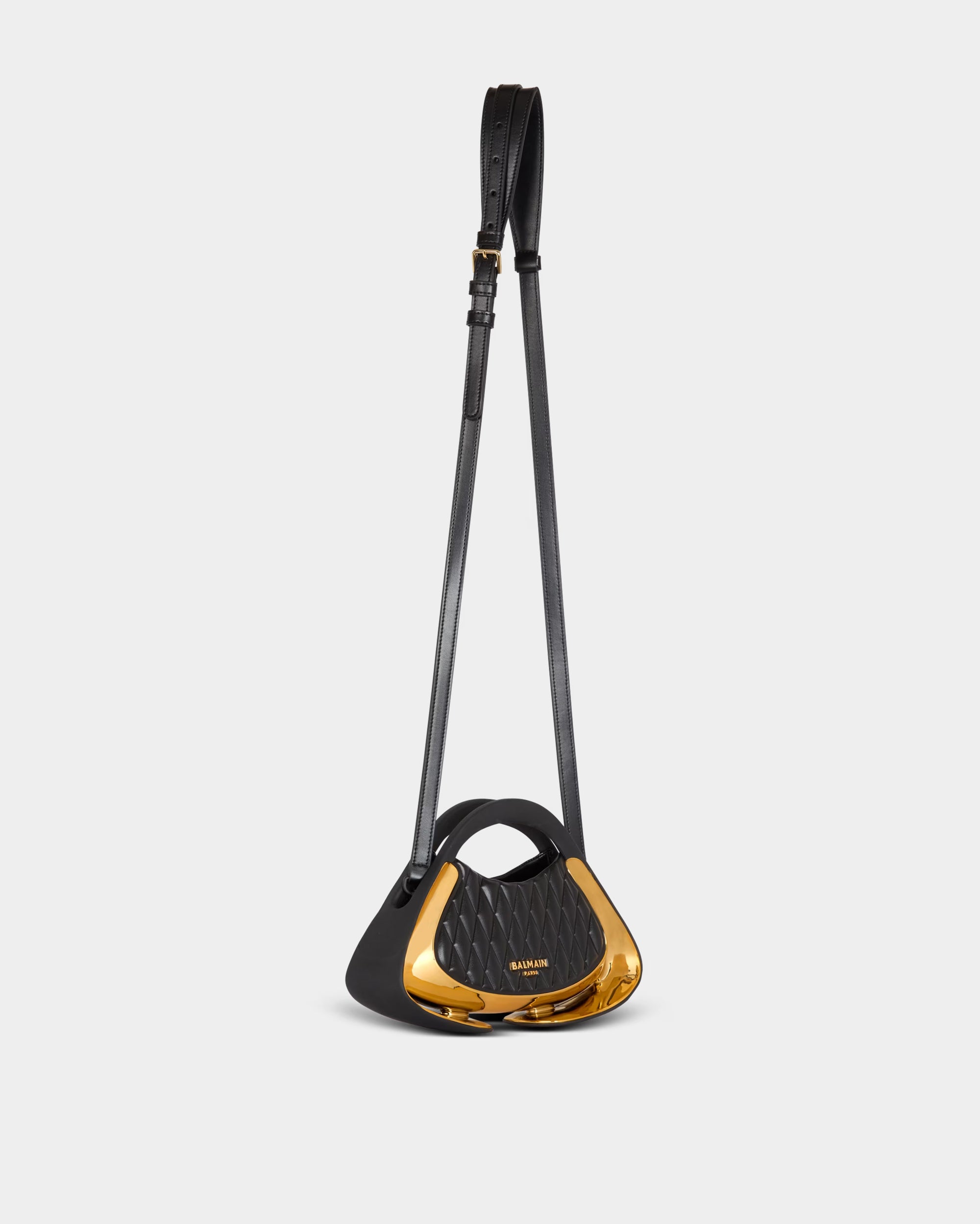 The Balmain Jolie Madame bag is a perfect blend of exquisite craftsmanship and versatile design, and is a symbol of luxury taste. This bag can be carried by hand, on the shoulder or across the body, and is paired with an adjustable and detachable leather and chain shoulder strap, making it easy to handle both daily wear and formal occasions. The metal Balmain Paris logo on the front highlights the brand's noble and luxurious temperament. The soft rubber handle and curved side design add a sense of delicate elegance. The shiny gold curved side details and magnetic buckle design are simple and modern. The interior is equipped with a leather card holder pocket and the Balmain embossed logo, and the exquisite details present an unparalleled luxurious style. No matter what style this bag is paired with, it is a perfect display of fashion and taste.