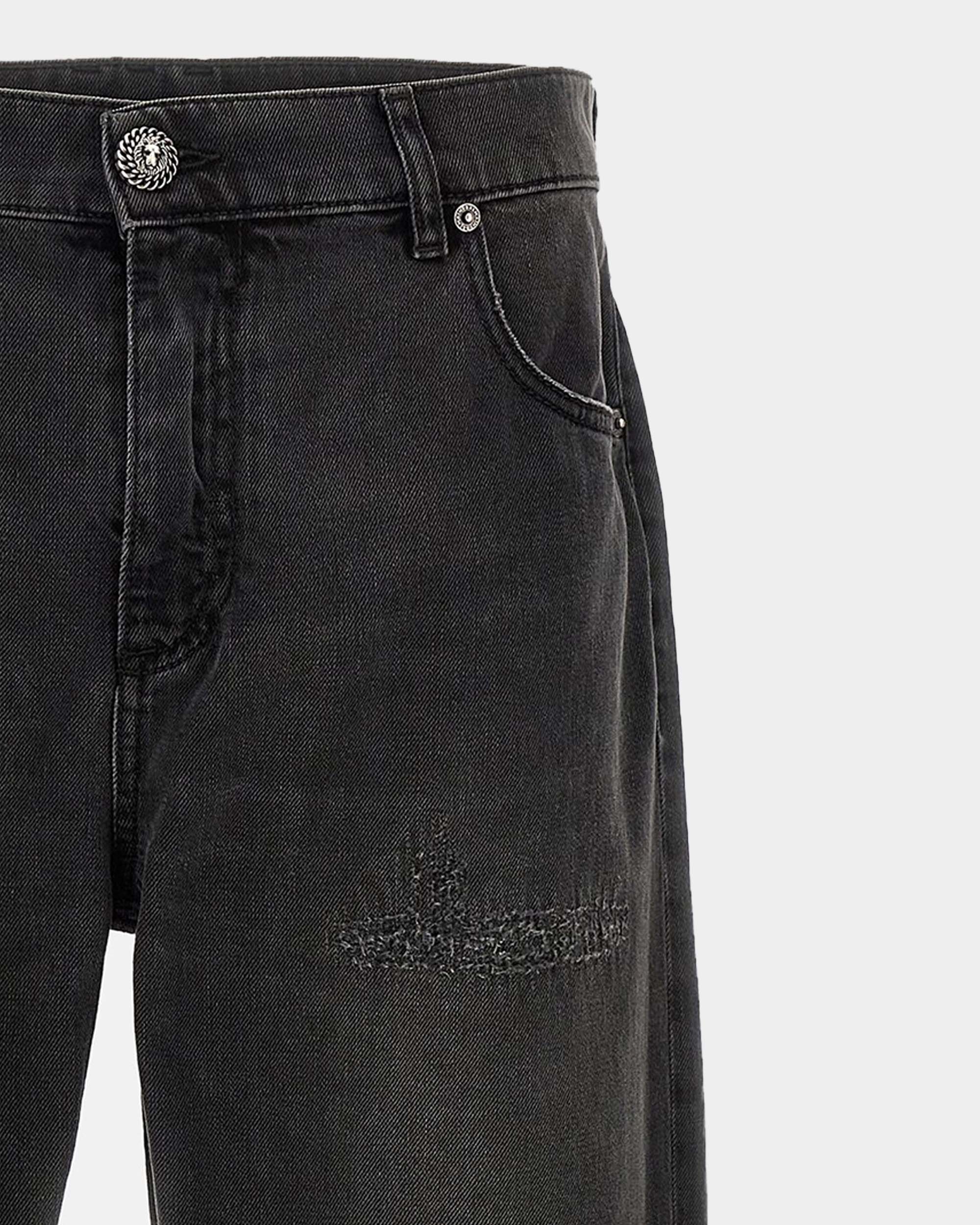 Made of 100% Italian cotton, the fabric is flexible and durable. The knees and legs are distressed and scratched to create an unruly street style. The classic five-pocket cut is equipped with the brand's metal "Double Chain Lion" zipper and rivet buckle, and the details echo the brand's French gorgeous aesthetics. The straight version is both decorative and comfortable, and can be easily controlled regardless of daily wear or trendy styling.
