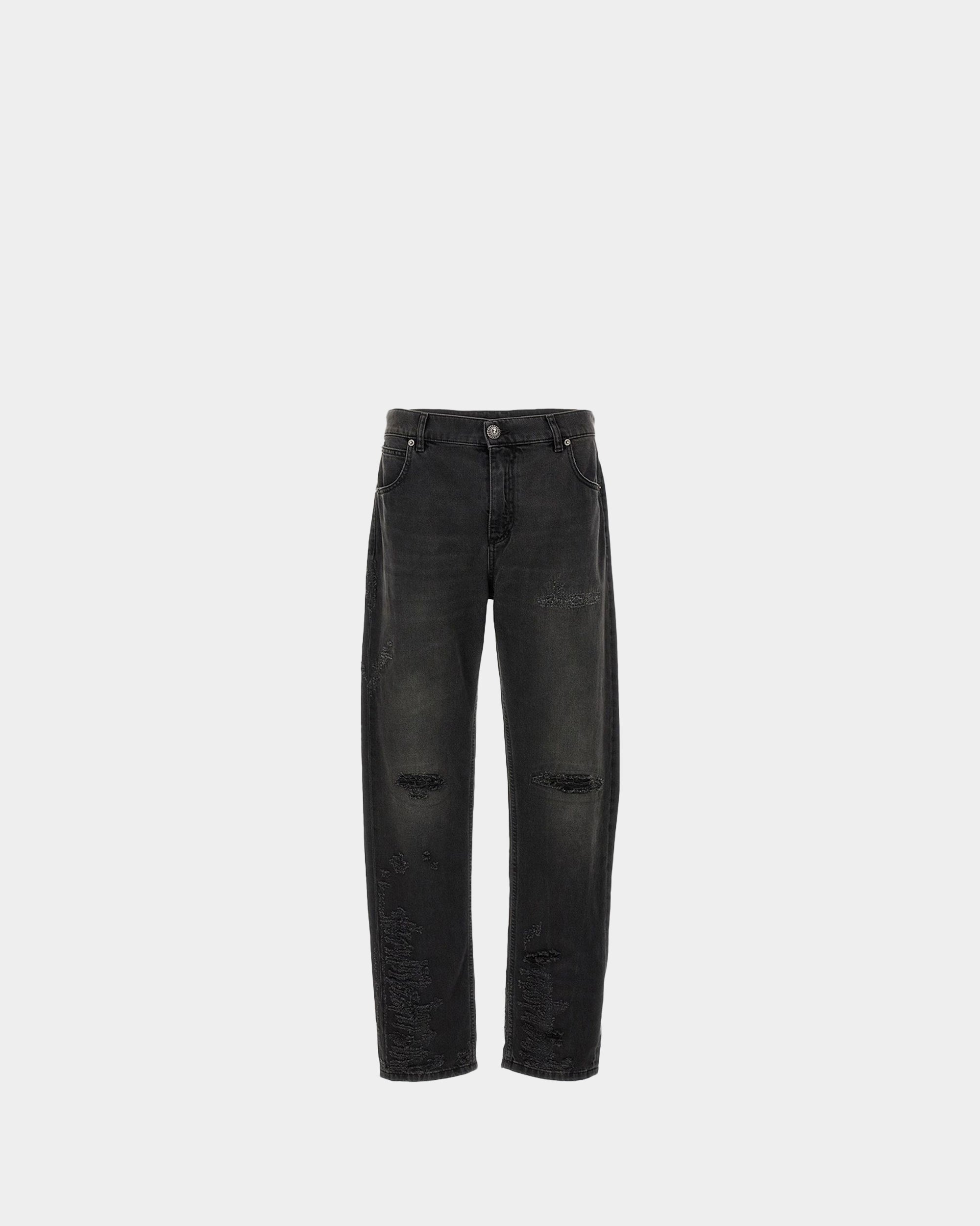 BALMAIN Black destroyed straight five-pocket jeans