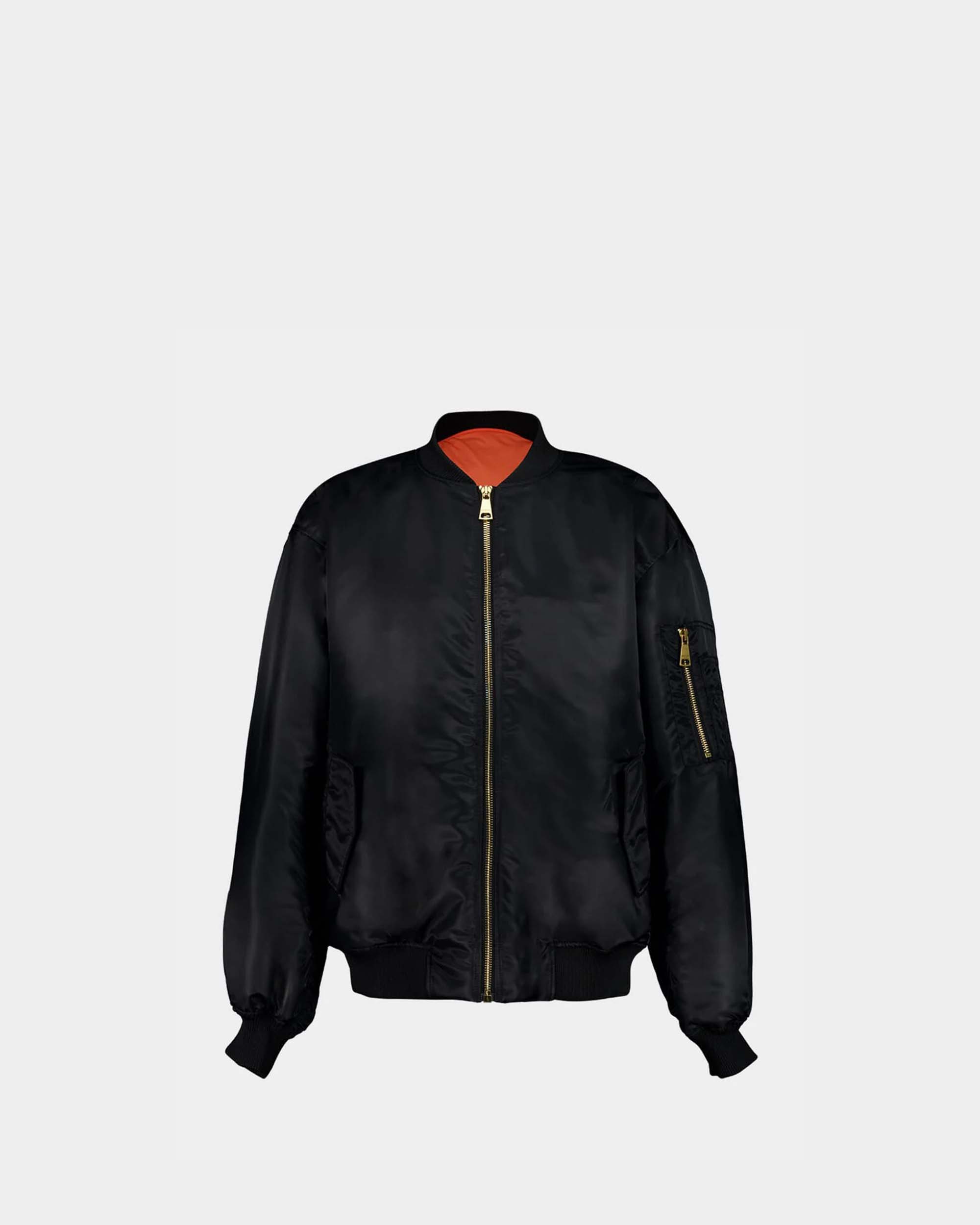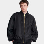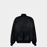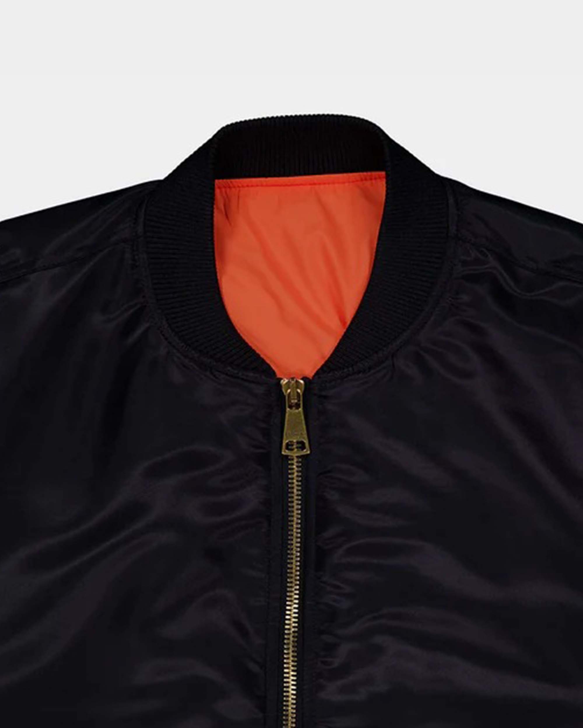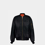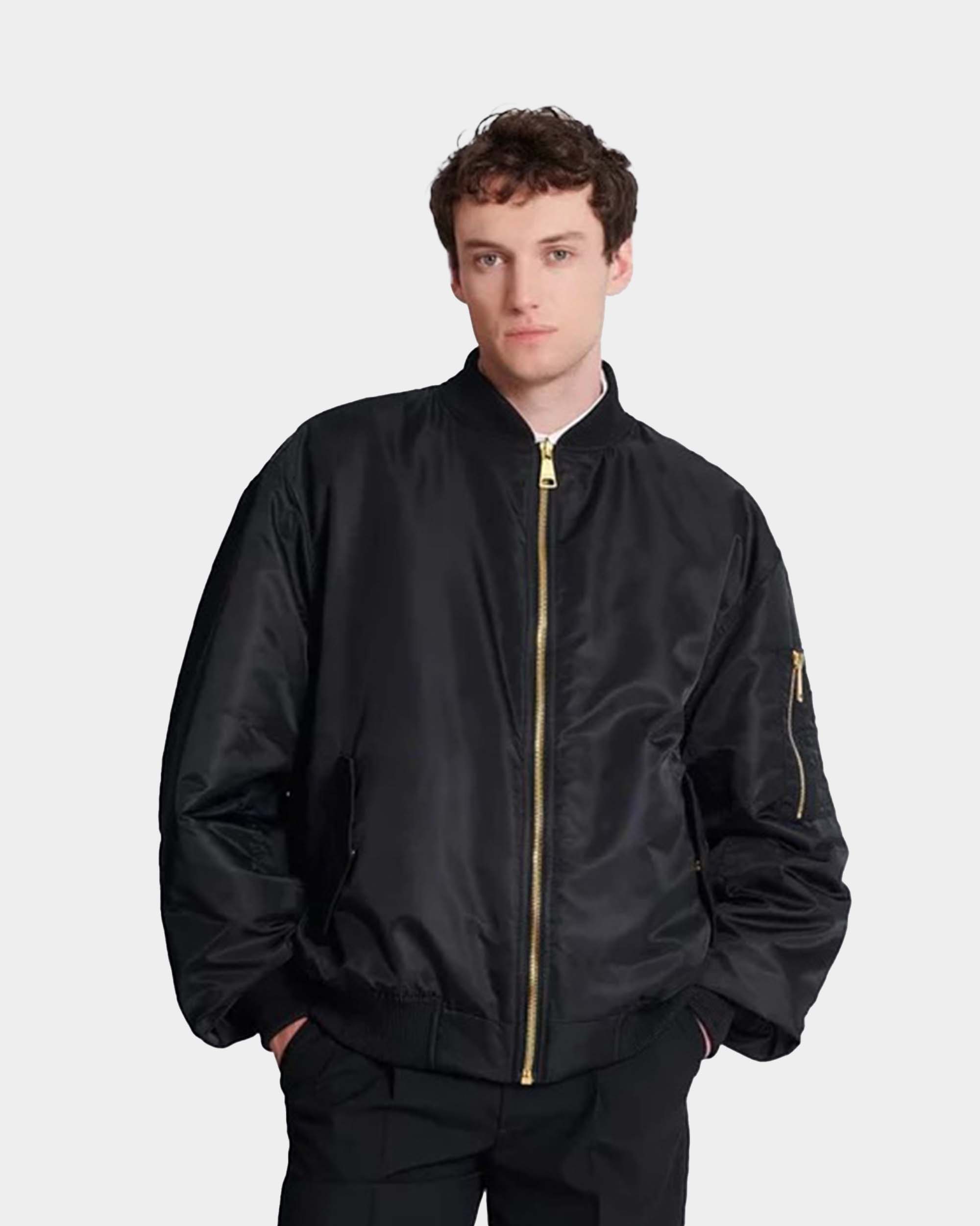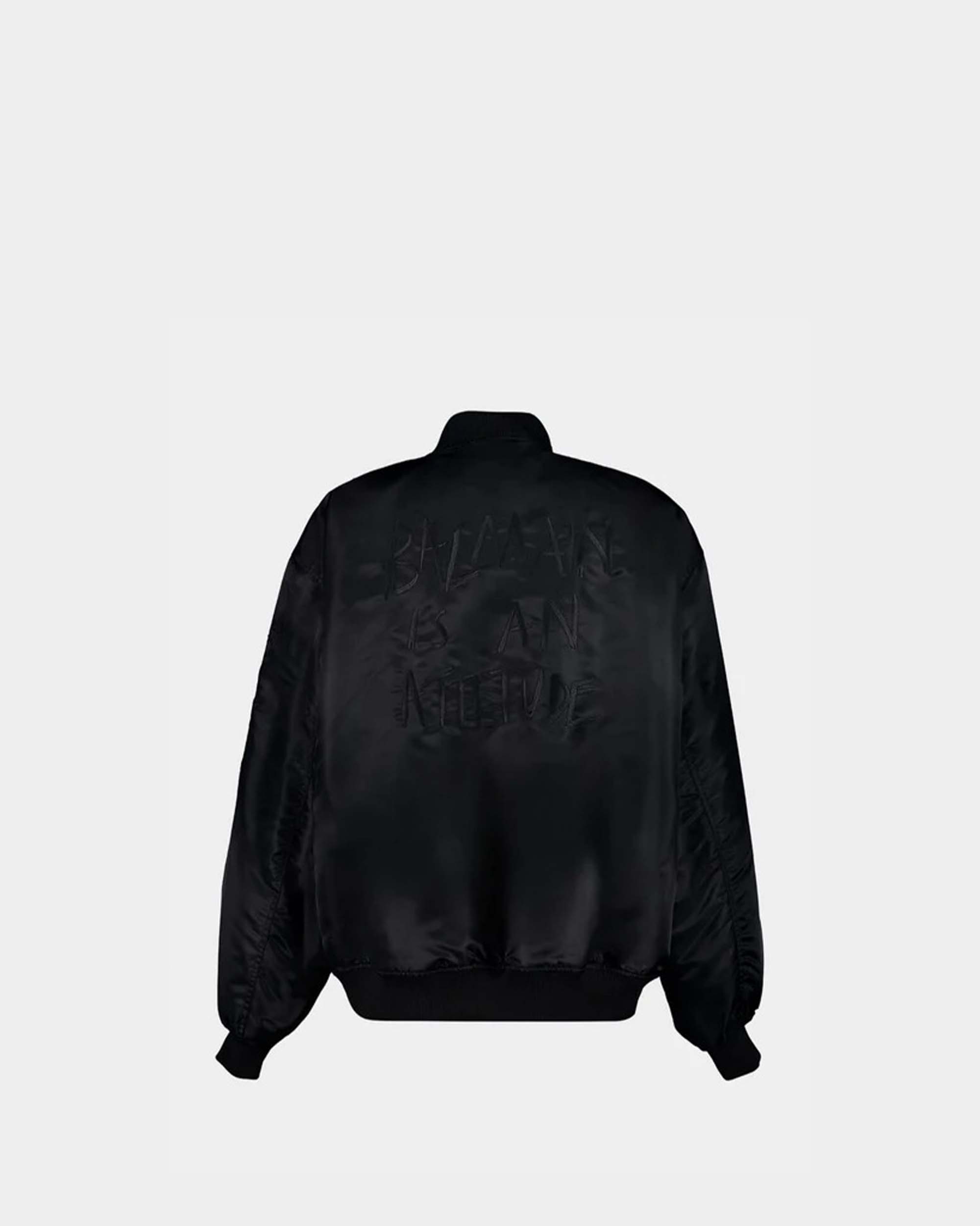 此款黑色尼龍飛行外套以背面「Balmain is an Attitude」刺繡標語作為視覺焦點,展現鮮明且自信的風格態度。選用再生聚醯胺材質製作,質地輕盈耐穿;經典飛行外套輪廓搭配羅紋領口、袖口與下襬設計,營造俐落比例。拉鍊開合細節結合品牌刻字拉片,袖口口袋與側邊口袋配置兼具造型與實用性,是都會穿搭中的亮眼單品。