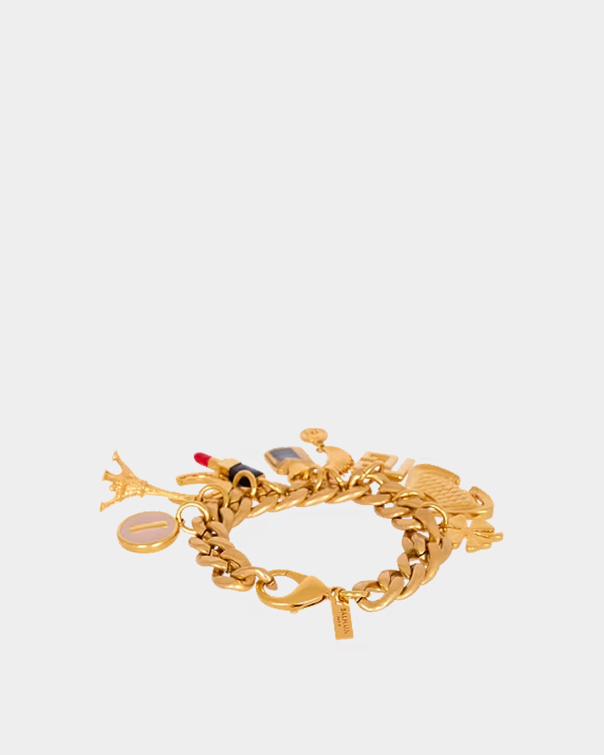 The eye-catching thick chain structure design is matched with Balmain classic elements such as lipstick, perfume bottle, Eiffel Tower and other pendants, combined with enamel, sequins and PB metal logo, to create a gorgeous Parisian style. The chain is adjustable and comes with a safety buckle design, which is practical and eye-catching.