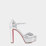 Made of silver glossy calfskin, with a thick forefoot sole and 13cm thick high heels, it shows a luxurious aura in stability. The ankle strap design modifies the ankle line, which is full of party atmosphere and modern fashion. The iconic red bottom echoes the brand's classics, and it is full of aura whether paired with a dress or pants.