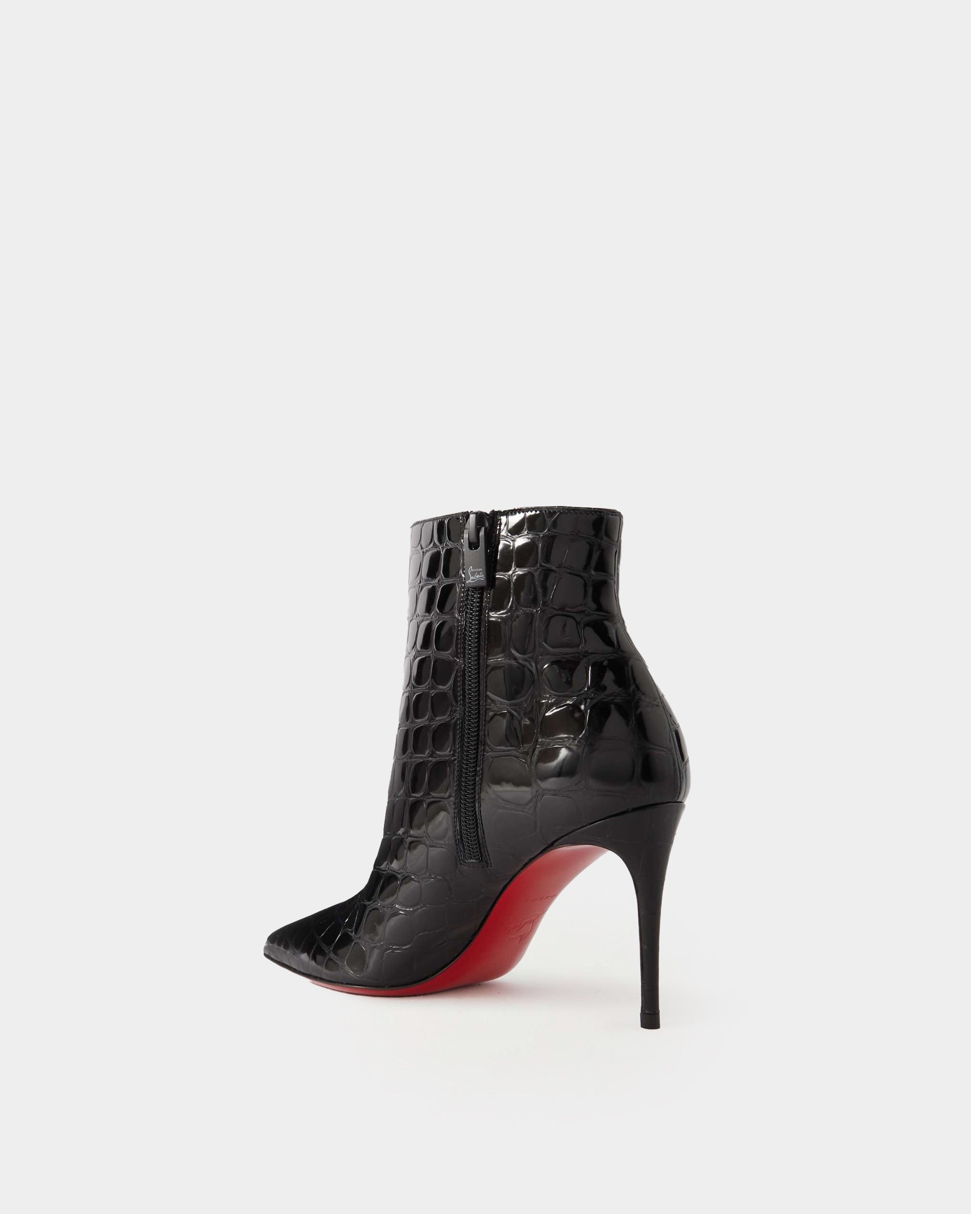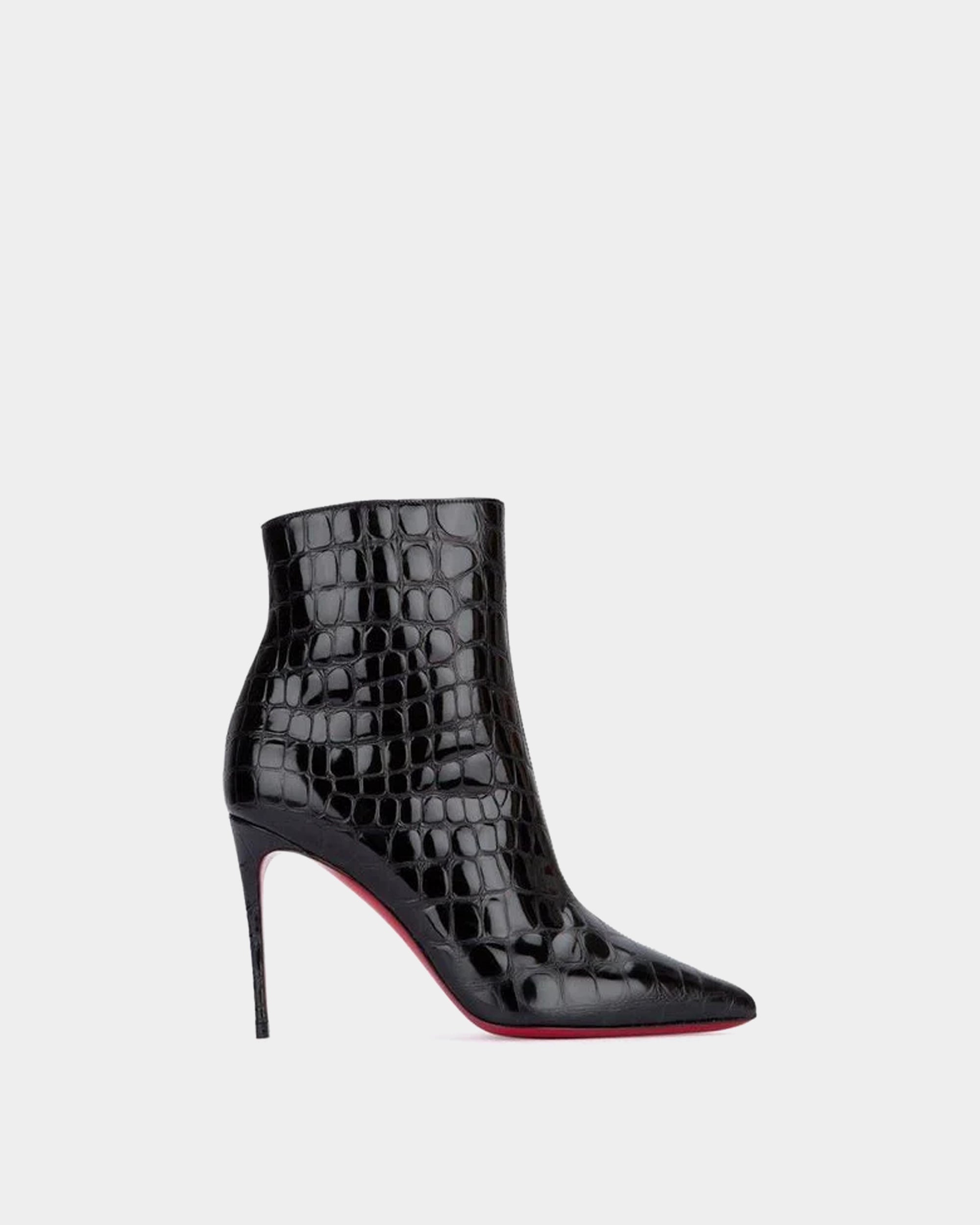 One of Christian Louboutin's most recognizable pointed-toe shoes, the So Kate ankle version is made of shiny croc-embossed patent leather, with an ultra-sexy stiletto heel and signature red sole, showing the perfect combination of elegance and fashion. Perfect with a dress or a long coat, it can be worn from day to night.
