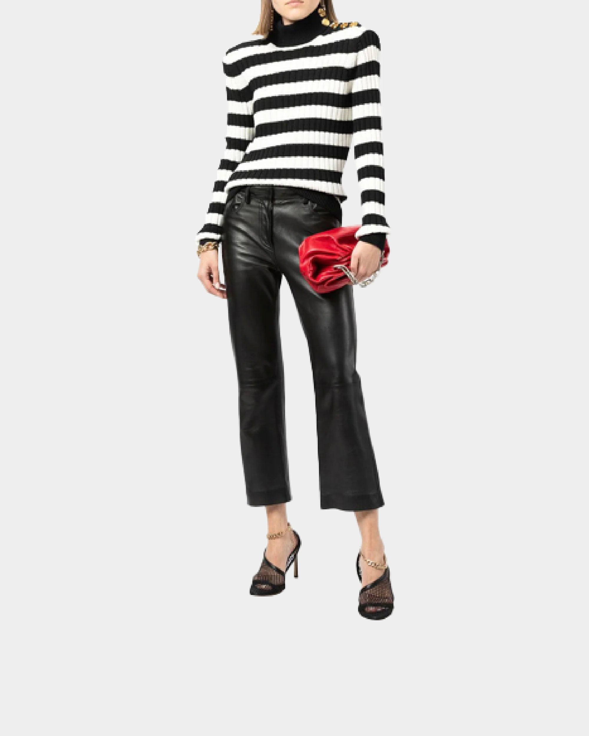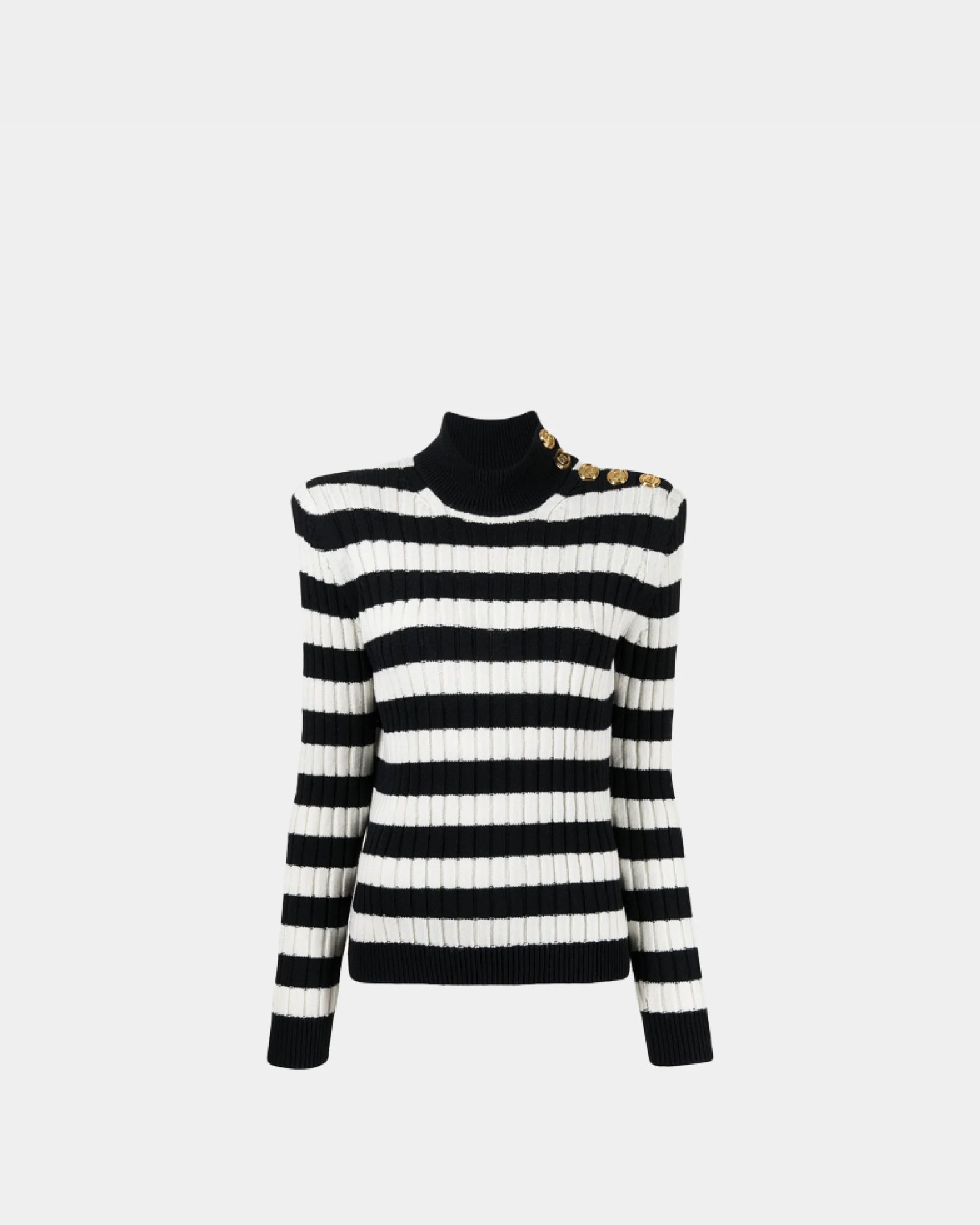 Balmain high collar black and white striped sweater / Women
