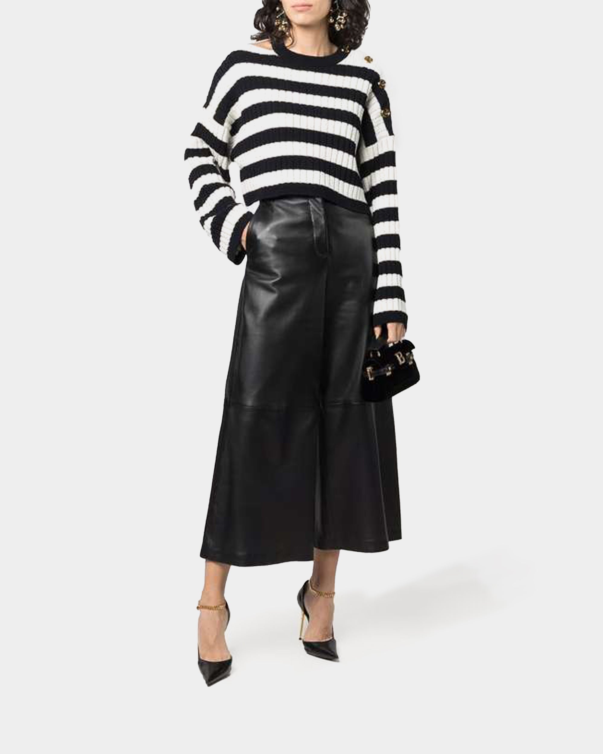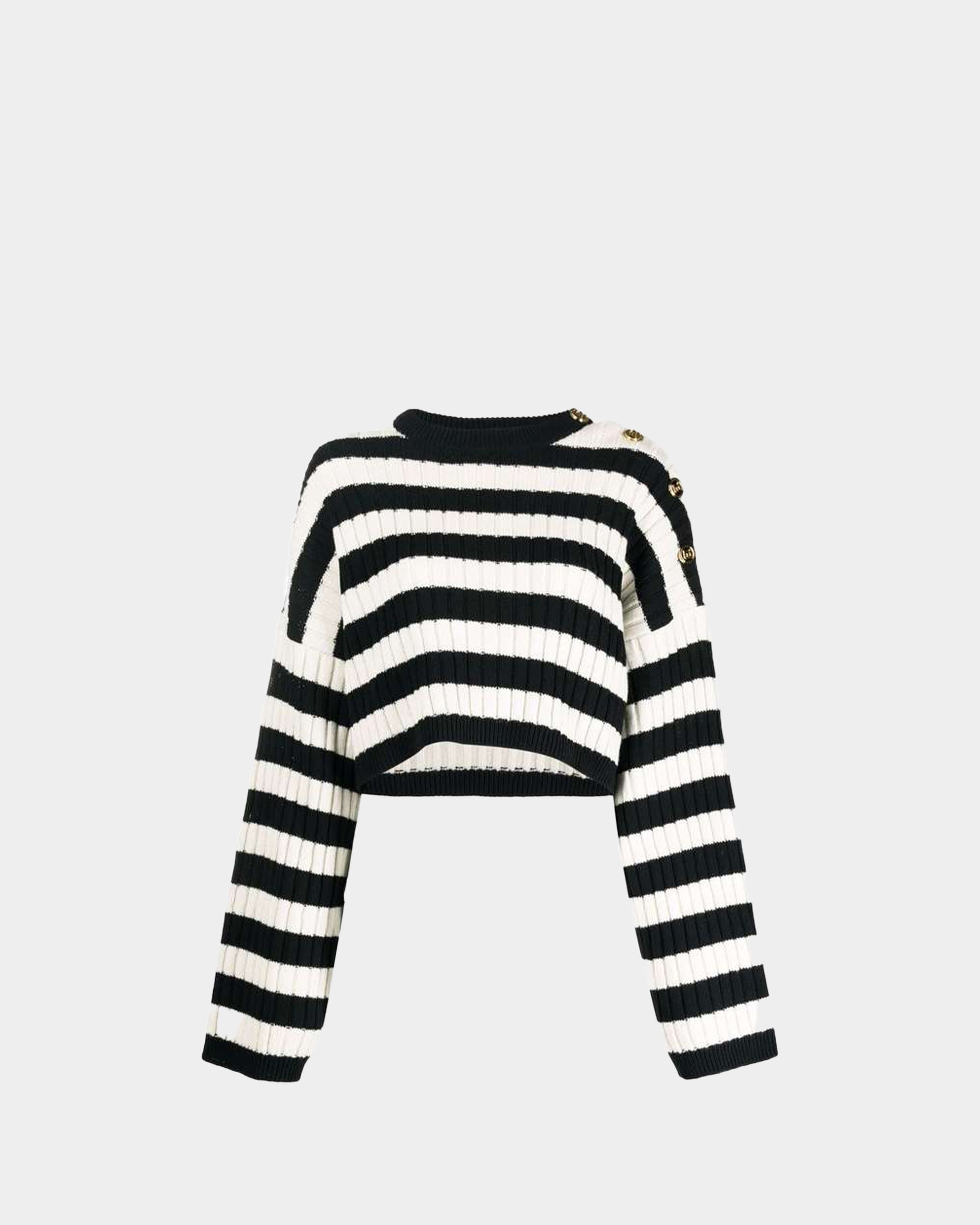 BALMAIN OVERSIZED SHOULDERS STRIPED CROP SWEATER