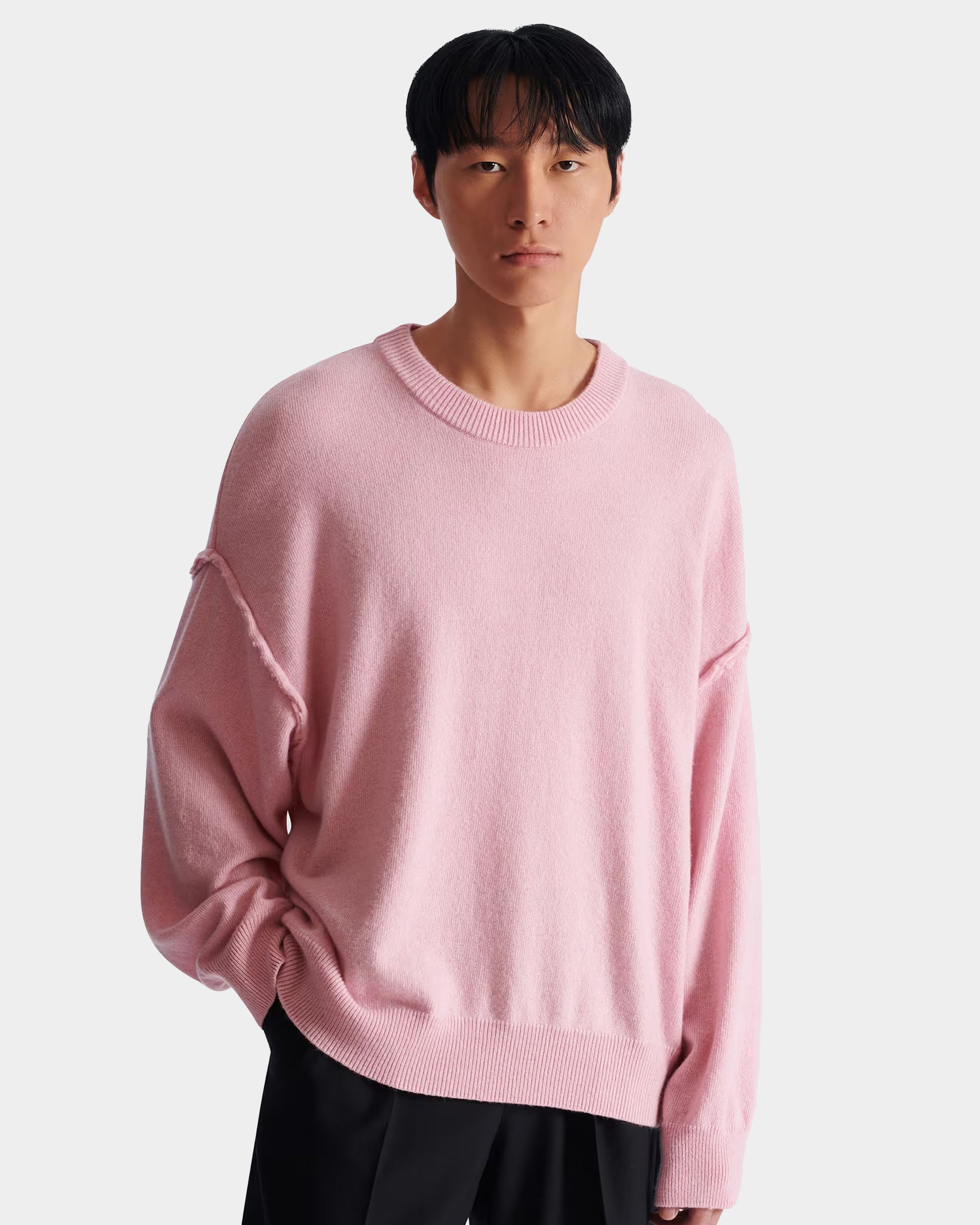 此款針織上衣以環保羊絨混紡材質製作,結合衛衣風格輪廓,呈現輕鬆卻不失質感的日常造型。長袖設計搭配刻意刷破處理,為整體增添隨性層次;下襬羅紋收邊讓版型更俐落,背面刺繡標籤細節低調點綴,展現精緻完成度。休閒版型適合日常穿搭,單穿或作為層次搭配都相當合適。
